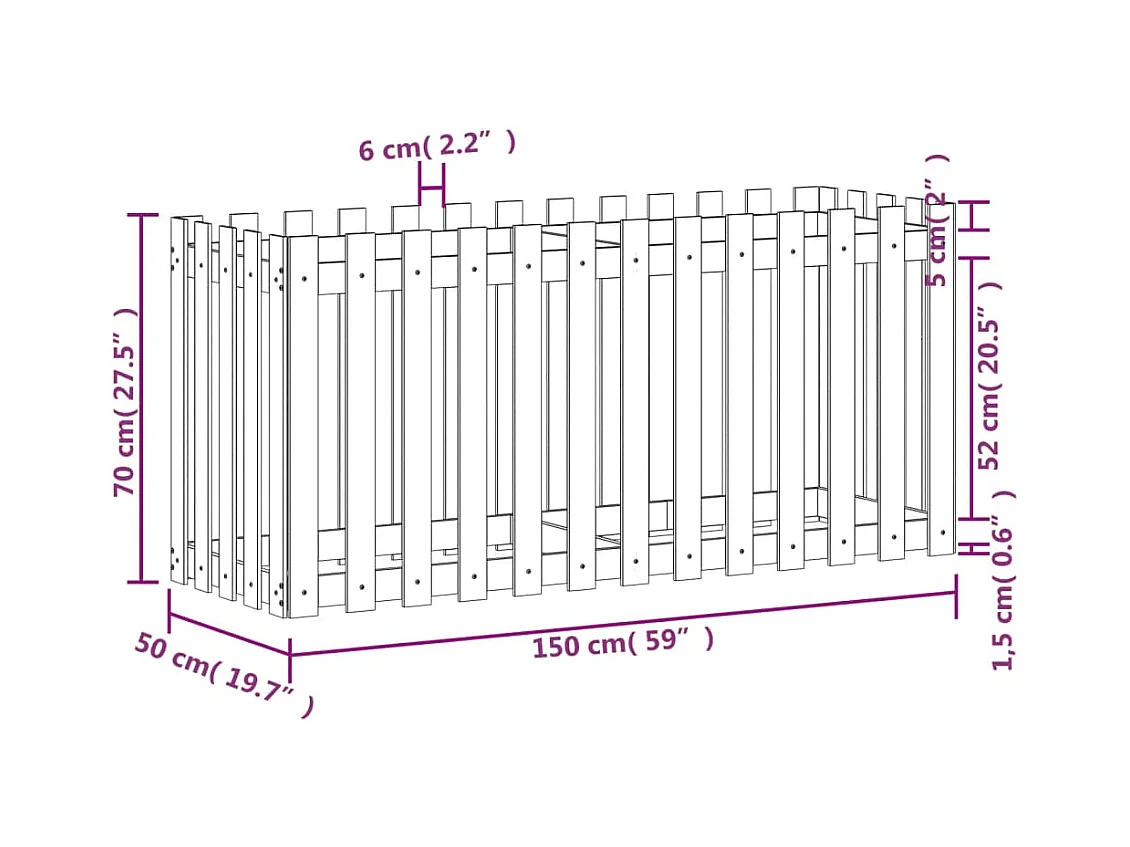 Lit surélevé de jardin design de clôture 150x50x50 pin massif