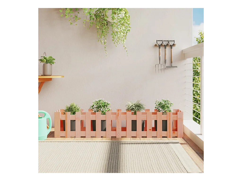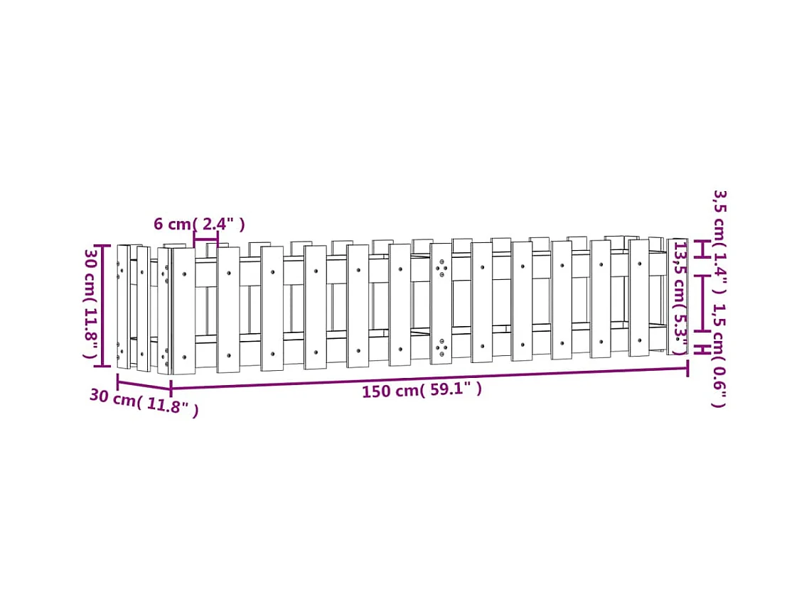 Jardinera elevado jardín con valla madera maciza pino 150x30x30cm ES70271