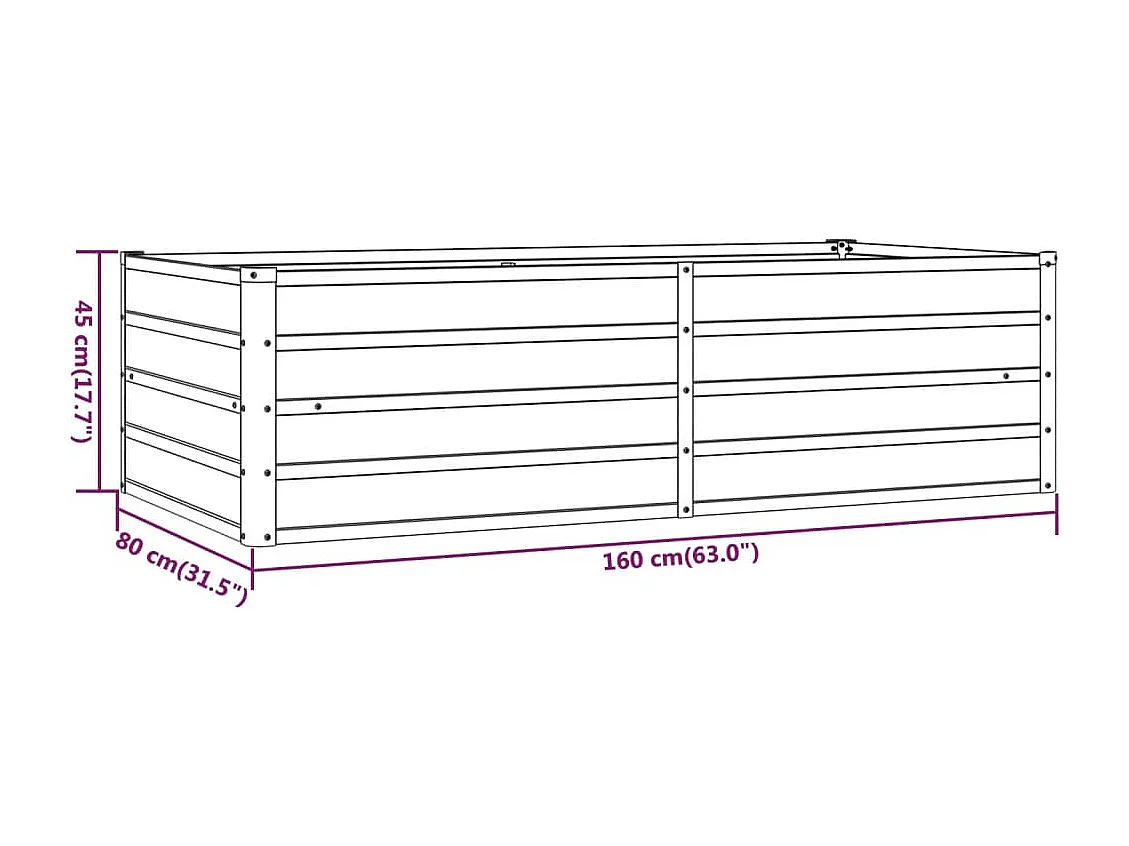 Lit surélevé de jardin rouillé 160x80x45 cm acier corten