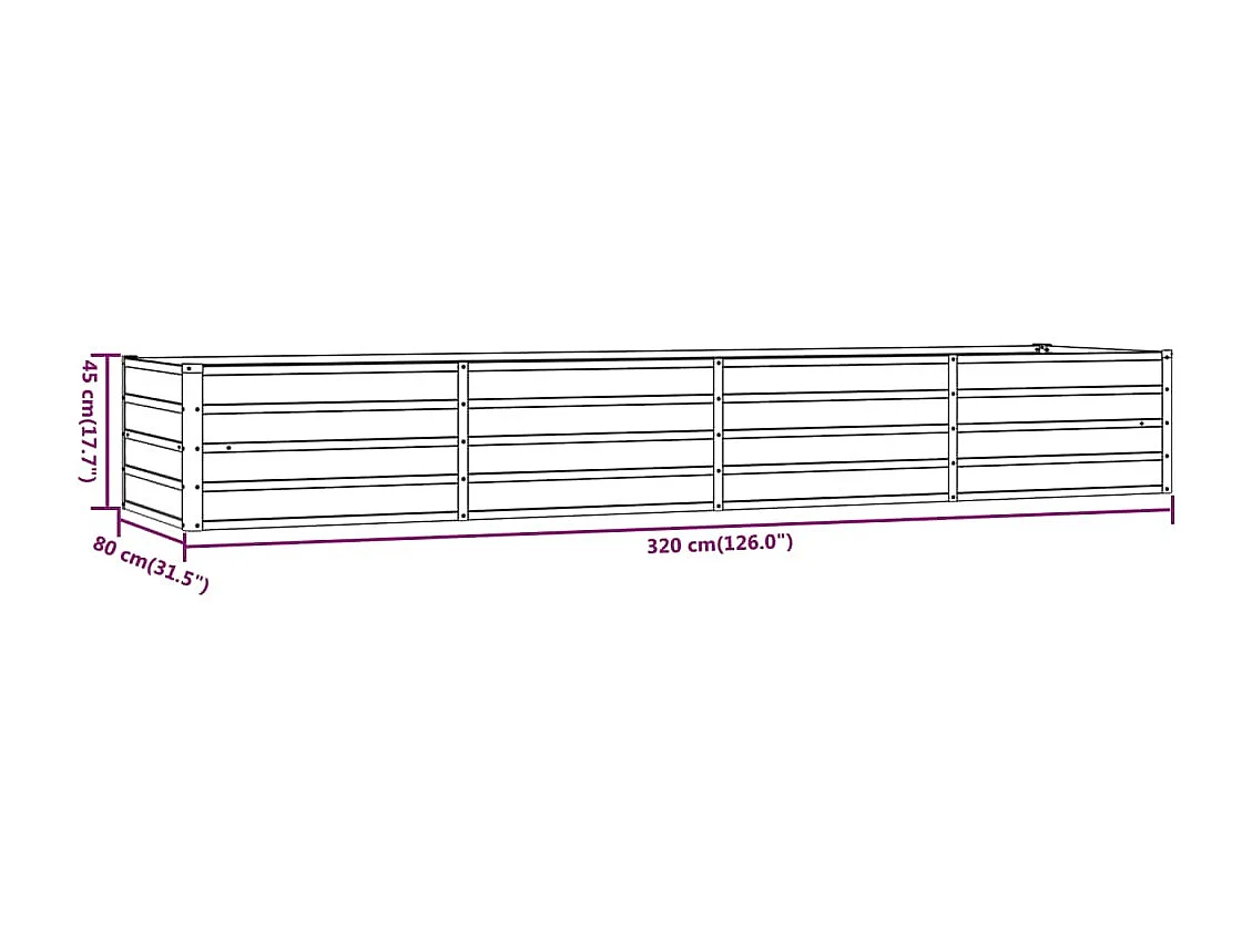 Lit surélevé de jardin rouillé 320x80x45 cm acier corten