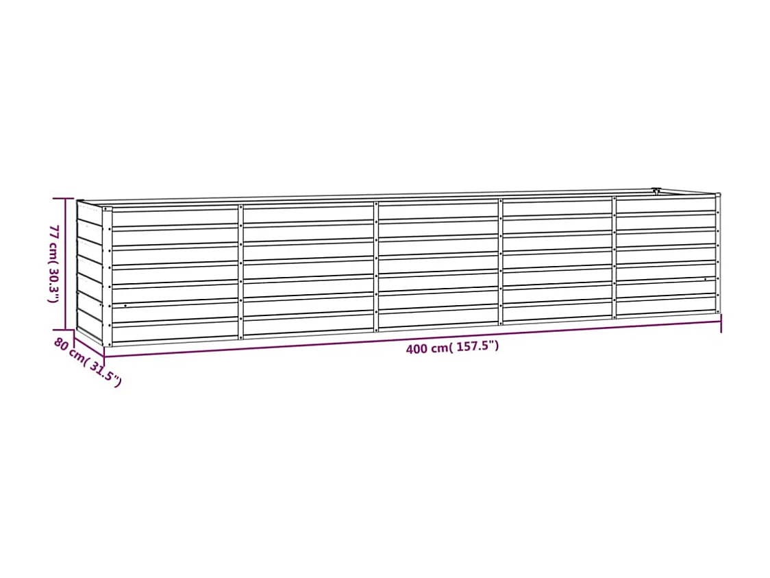 Lit surélevé de jardin rouillé 400x80x77 cm acier corten