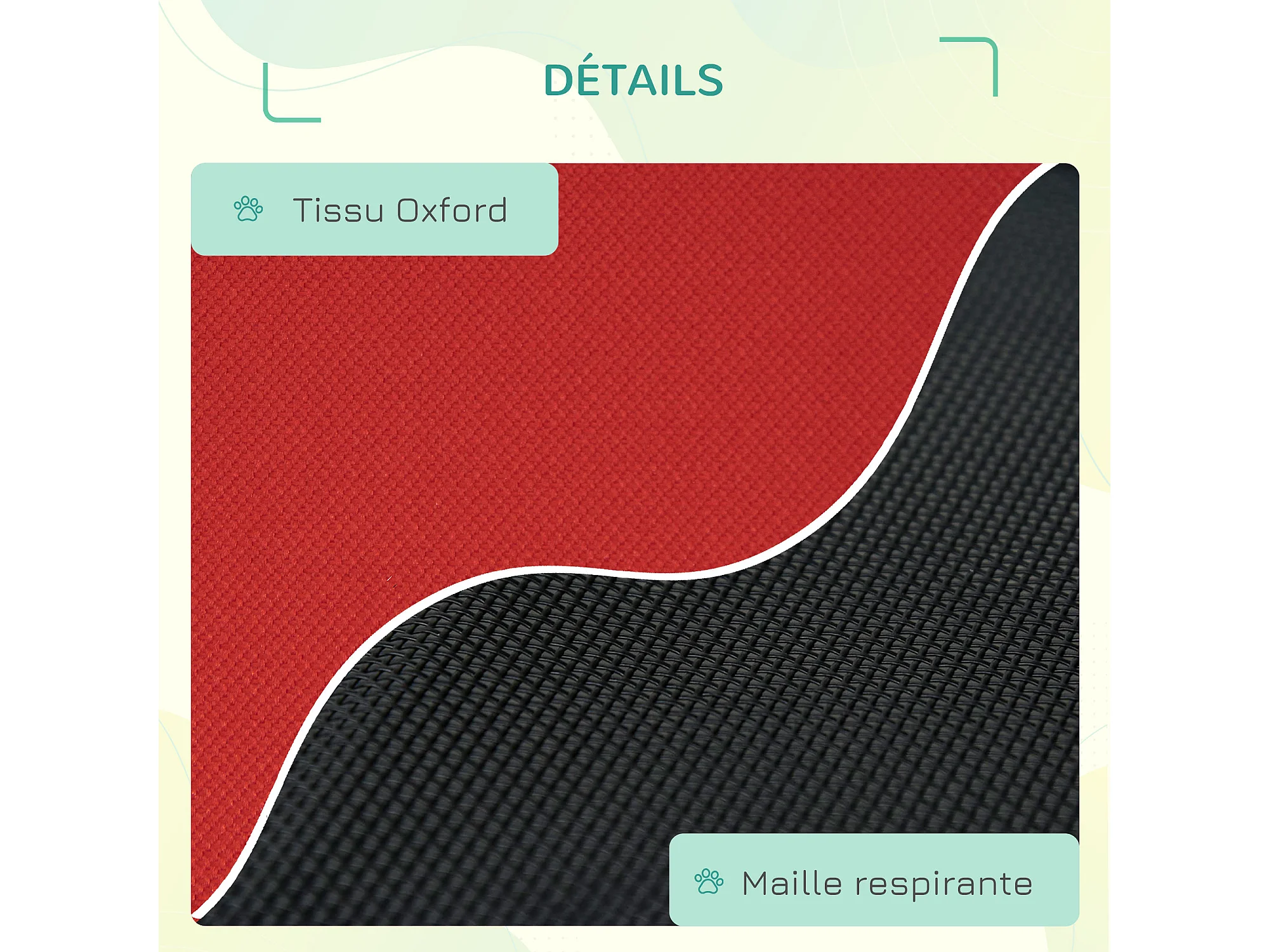 Lit surélevé pour chien chat dim. 61L x 46l x 18H cm avec sac métal époxy tissu oxford textilène micro-perforé rouge noir