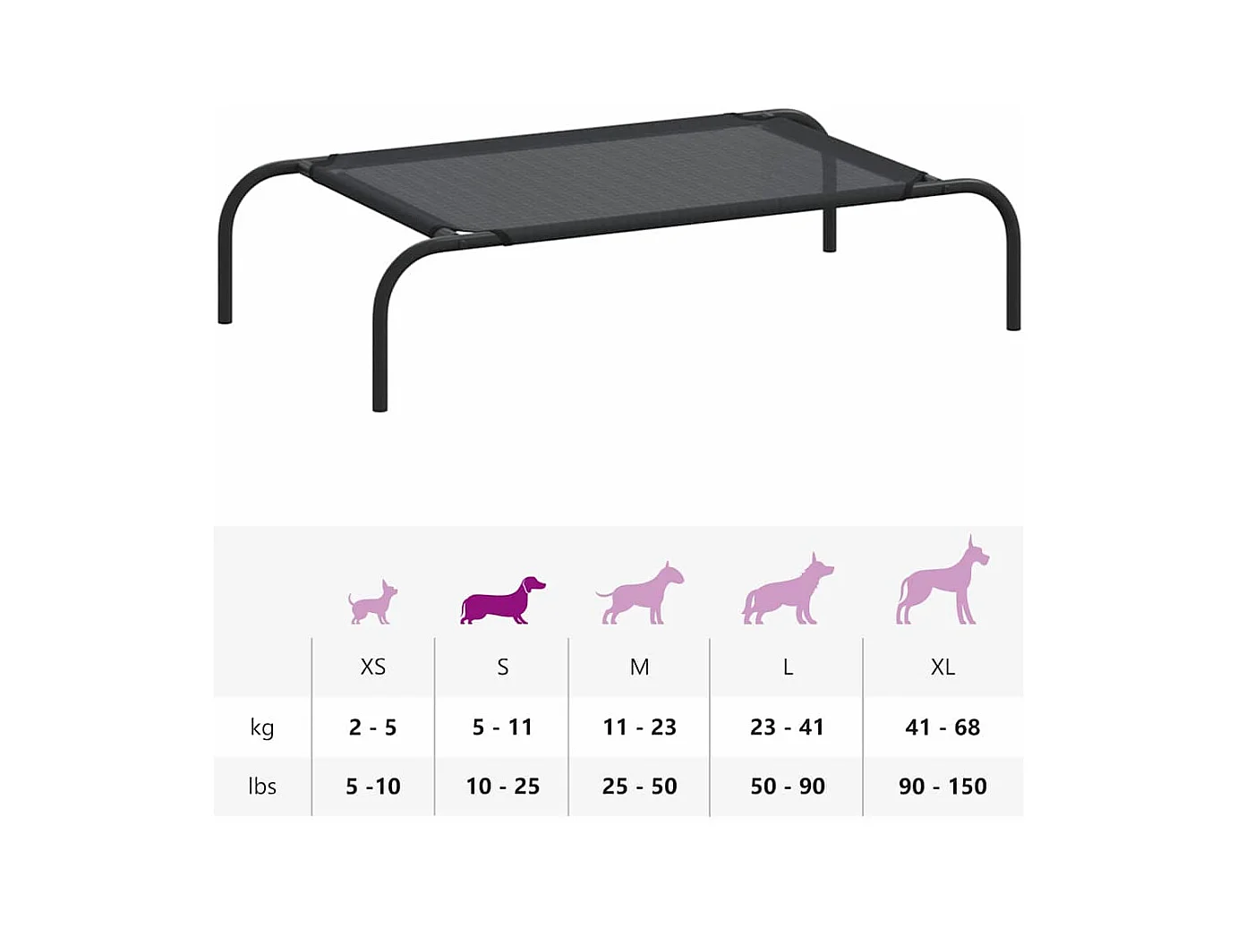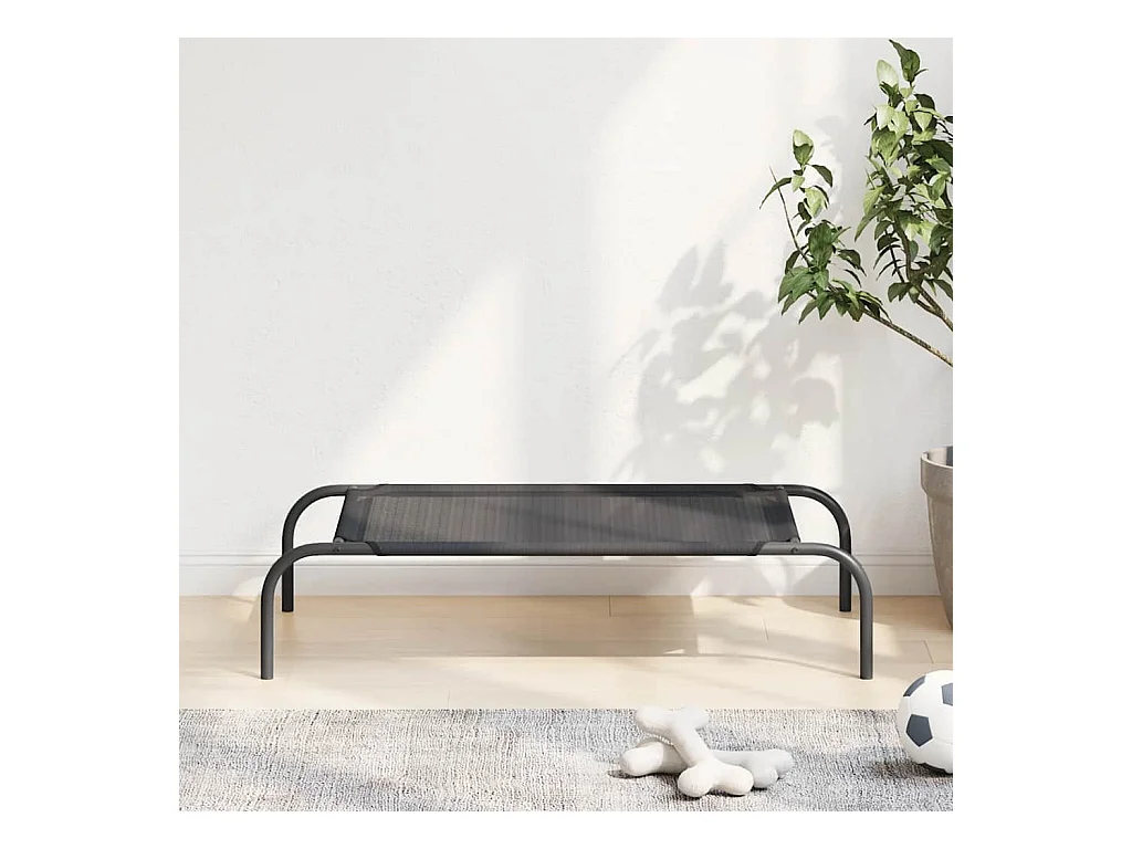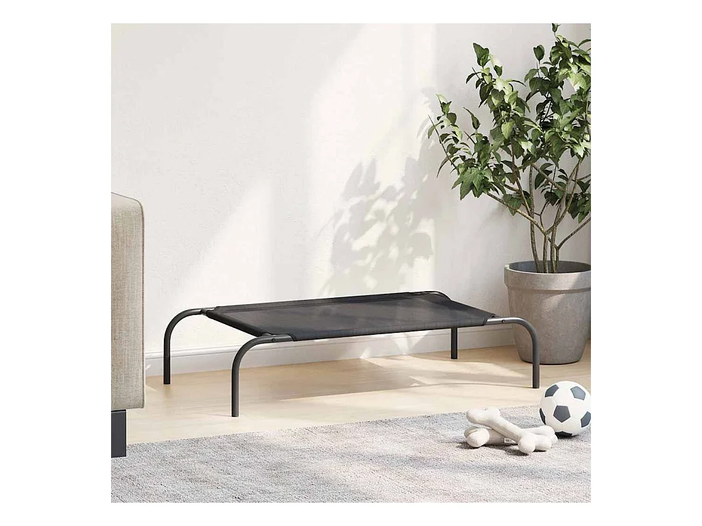 Lit surélevé pour chien noir 150x90x20 cm textilène et acier