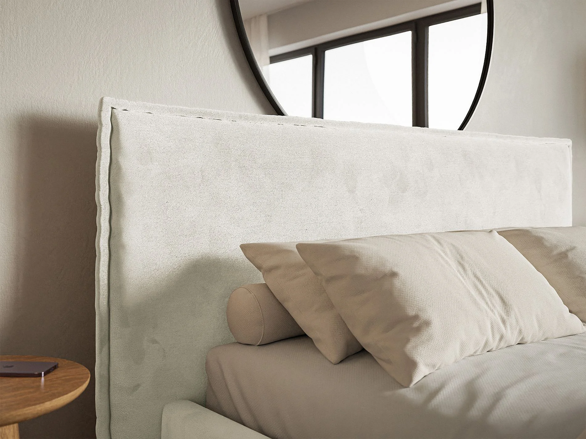 Lit tapissé 160×200 avec coffre et sommier - velours - grège - SOFTIE