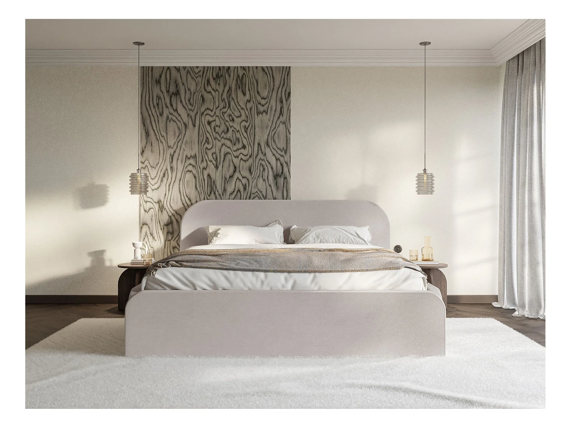 Lit tapissé – 180x200 cm – en velours beige-gris – UMIKE