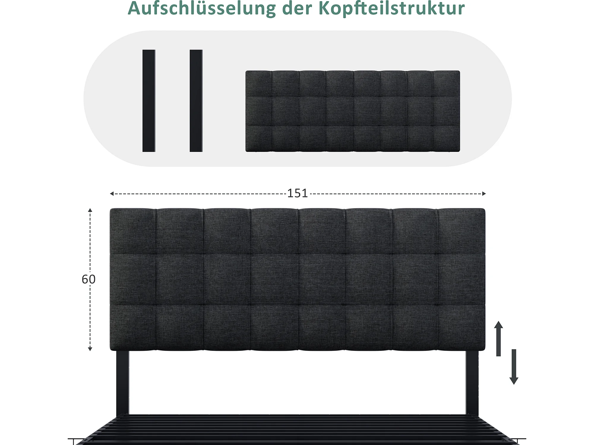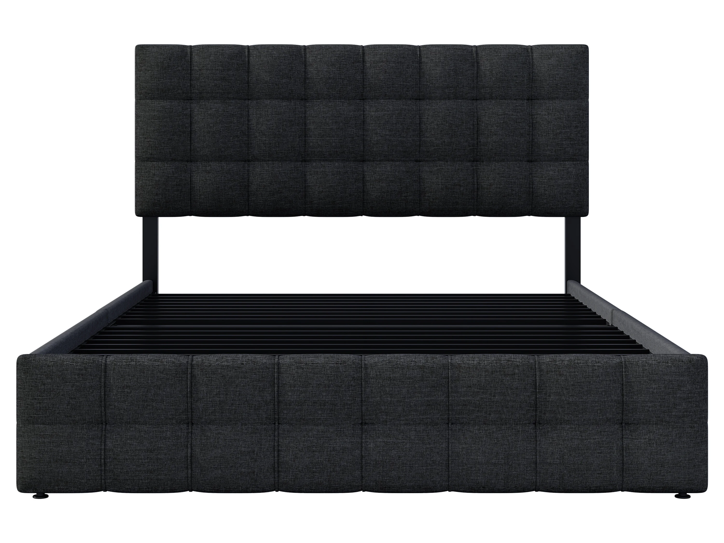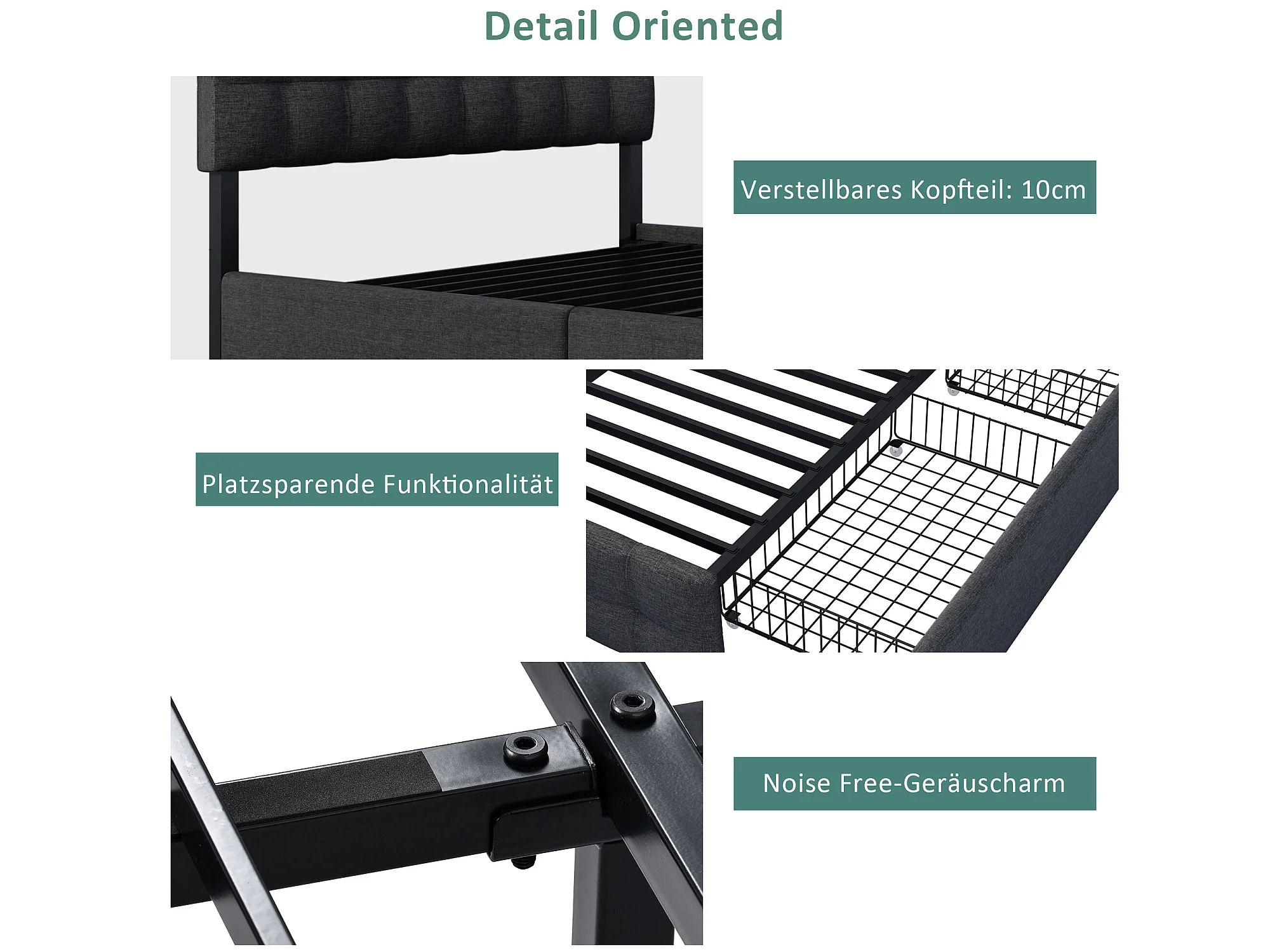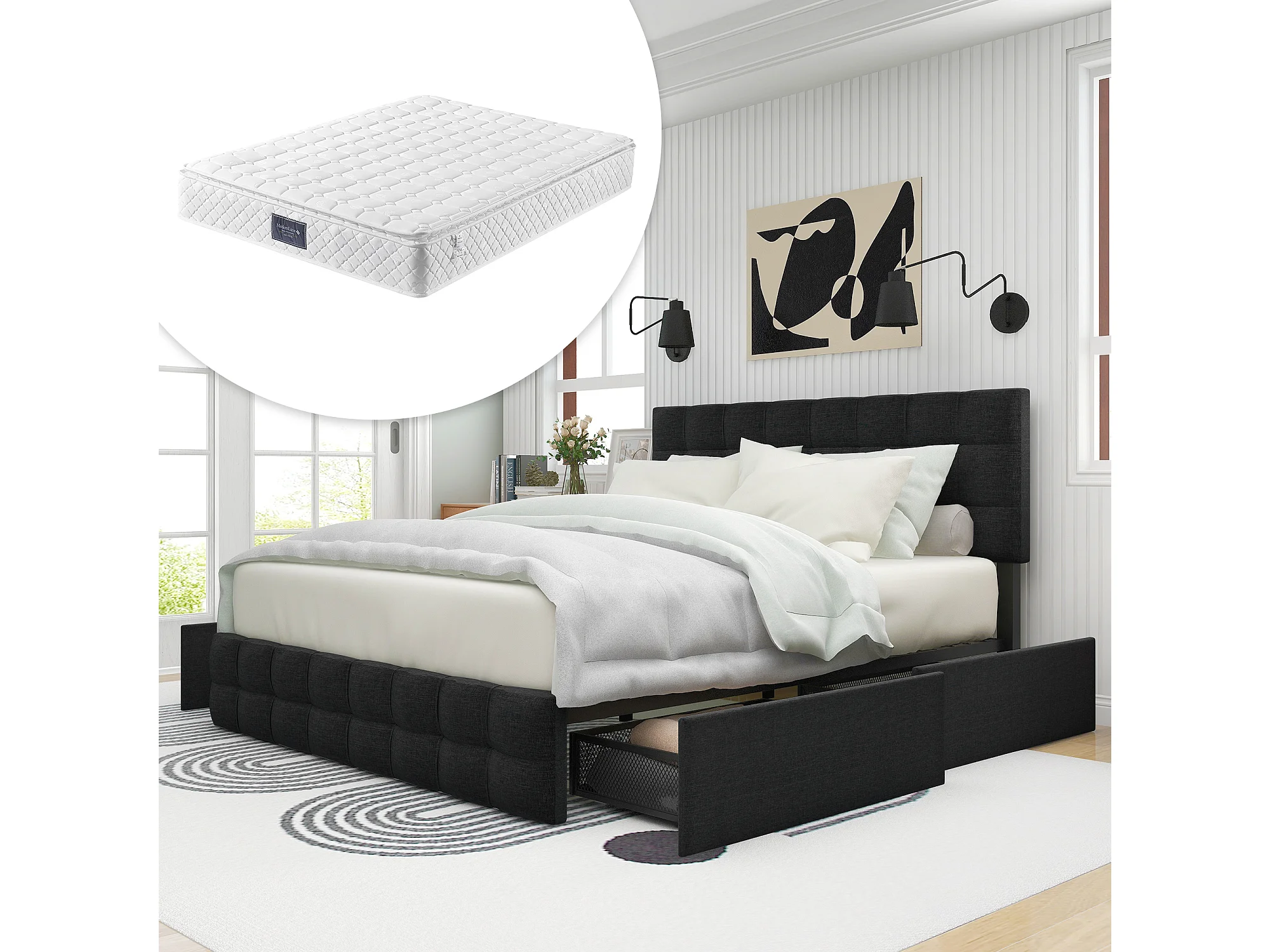 Lit tapissé avec 4 tiroirs et matelas à ressorts, noir 140x200 cm - Sweiko