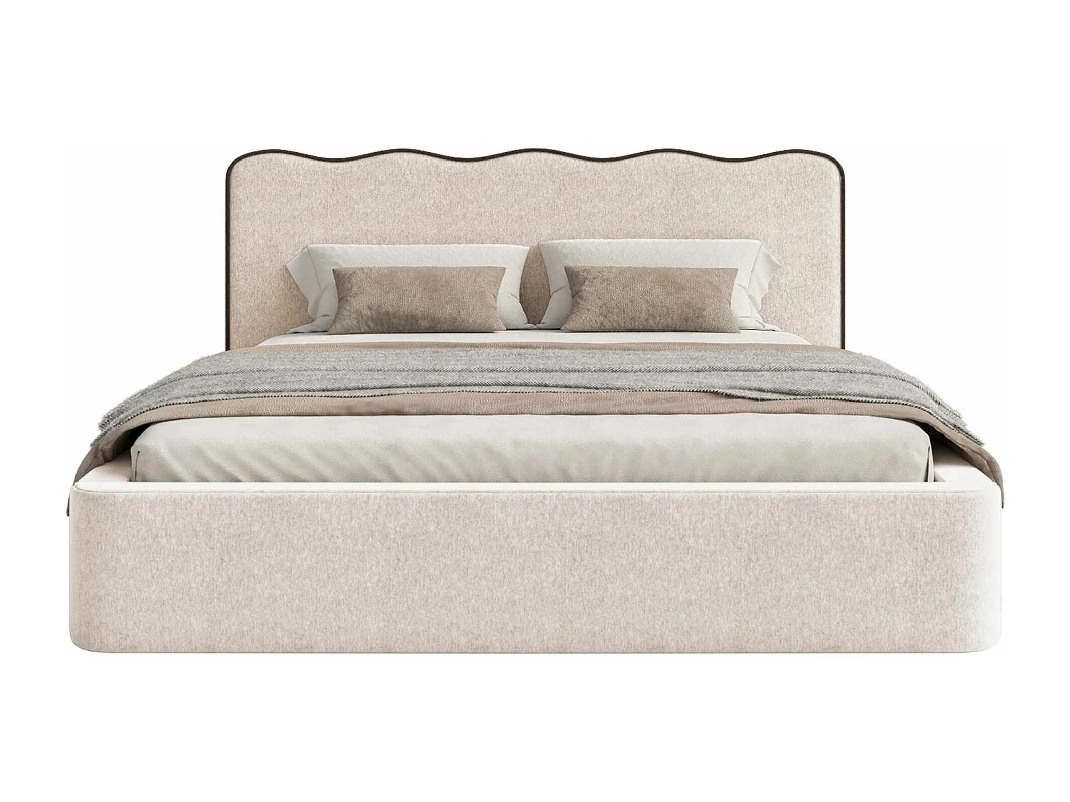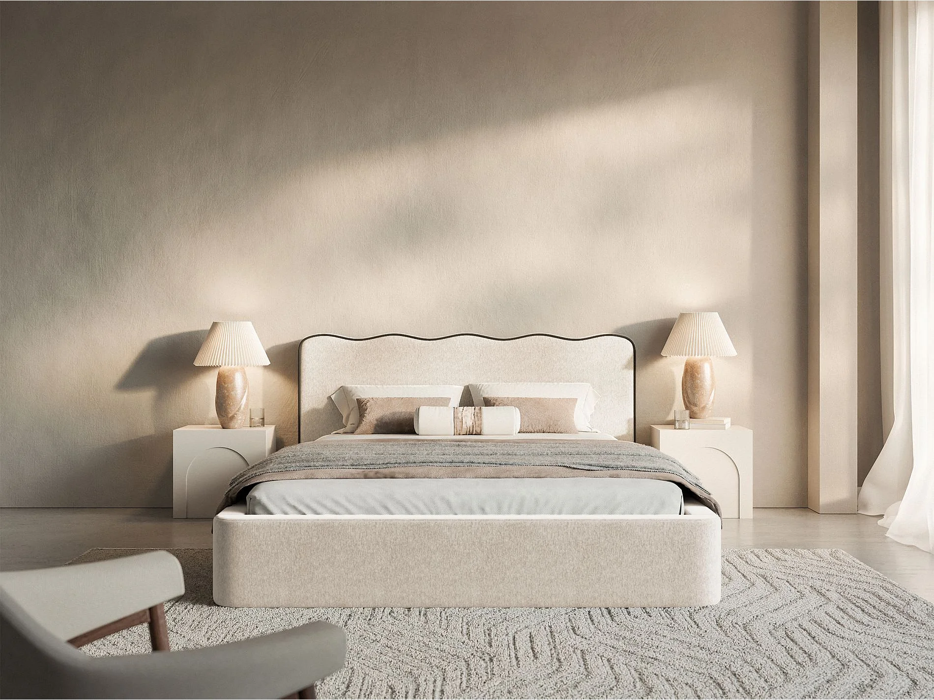 Lit tapissé avec coffre – 160x200 cm – en tissu tressé beige clair – DUNEY
