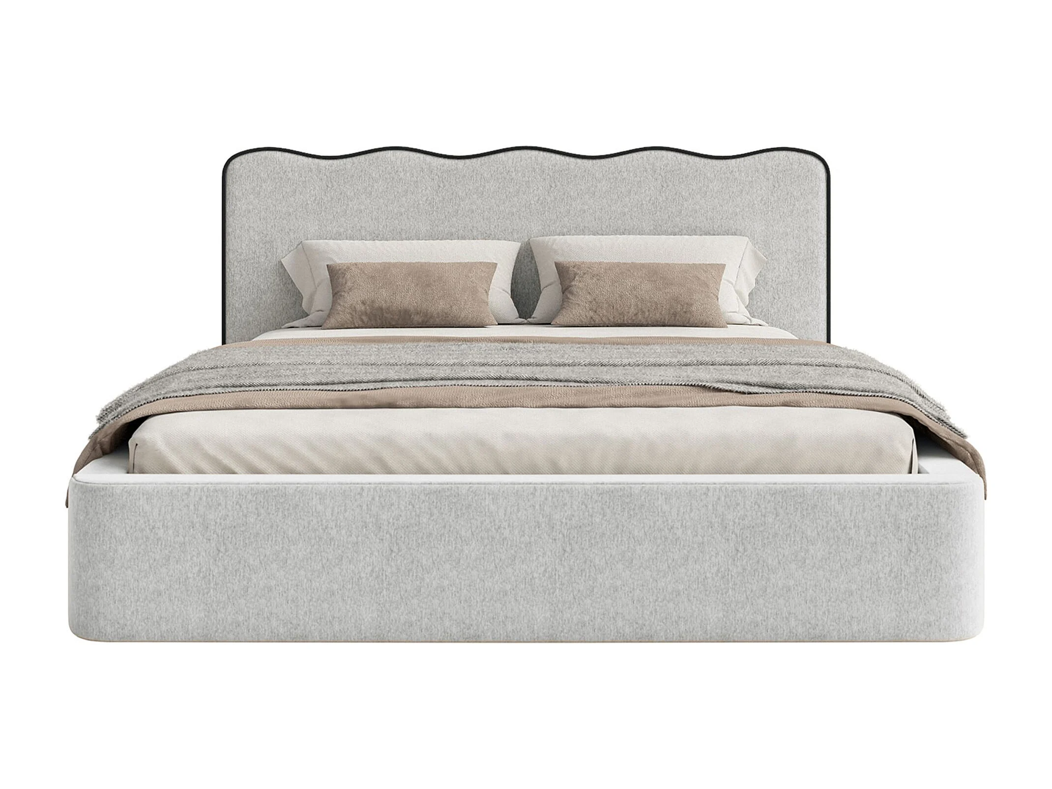 Lit tapissé avec coffre – 180x200 cm – en tissu tressé gris clair – DUNEY
