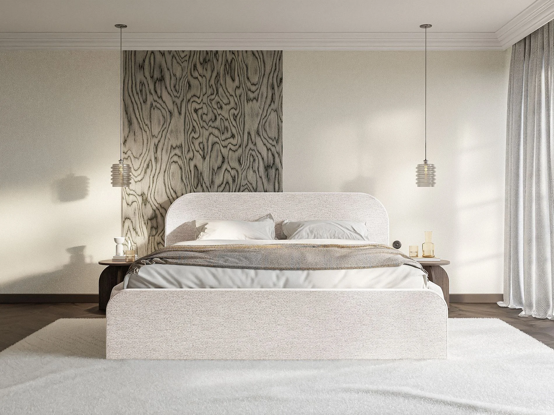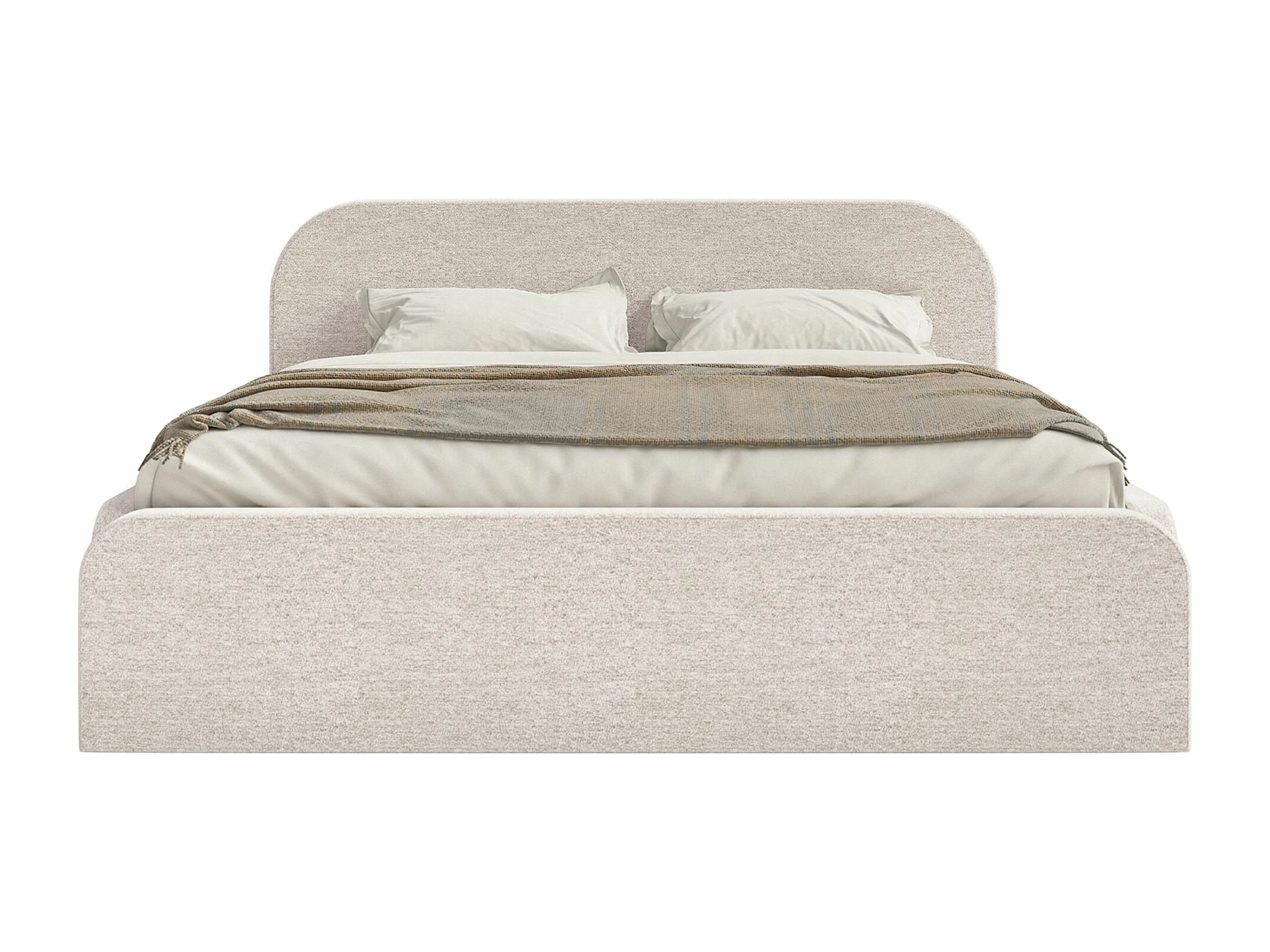 Lit tapissé avec coffre – 200x200 cm – en tissu chenille beige clair – UMIKE