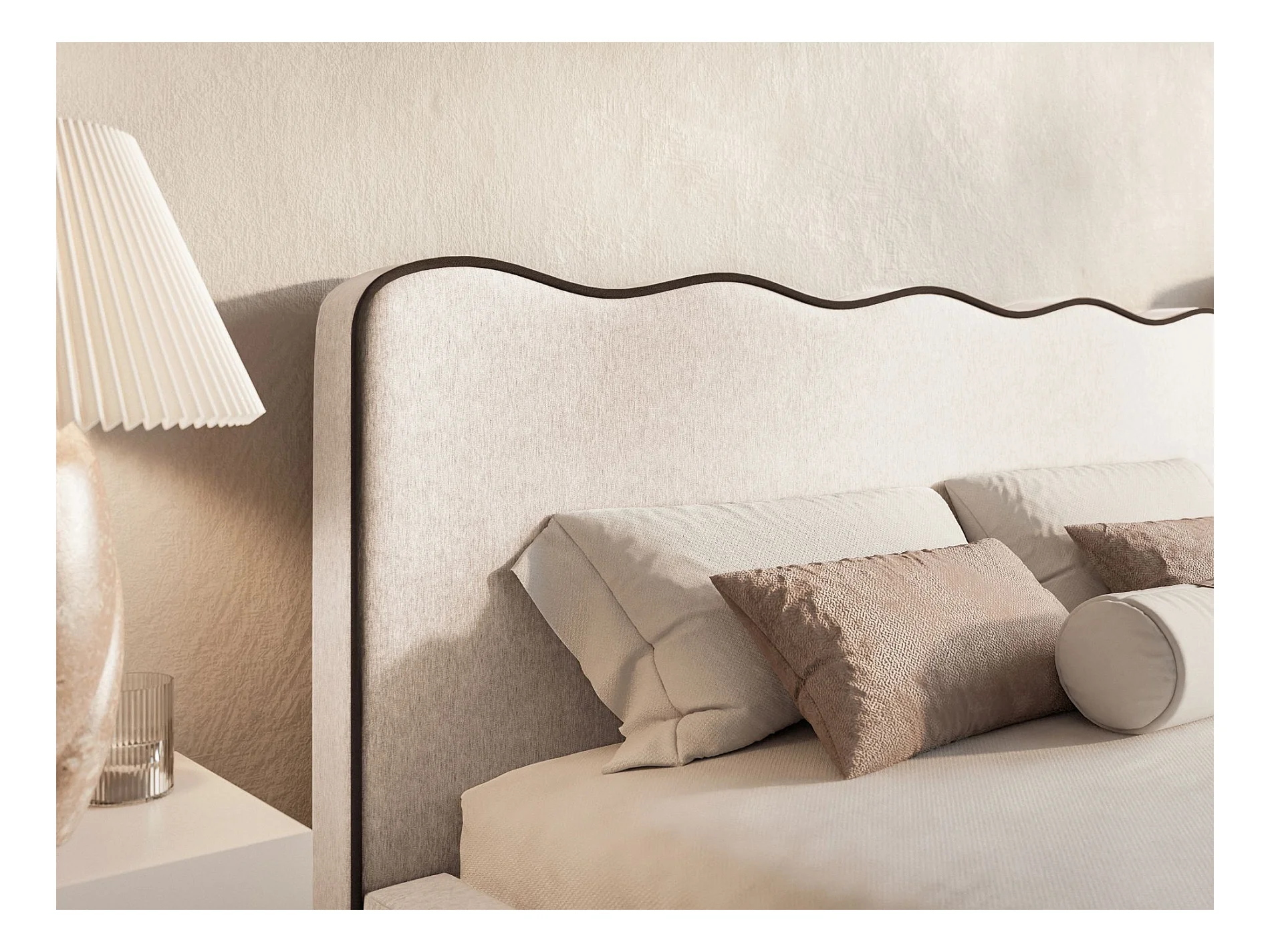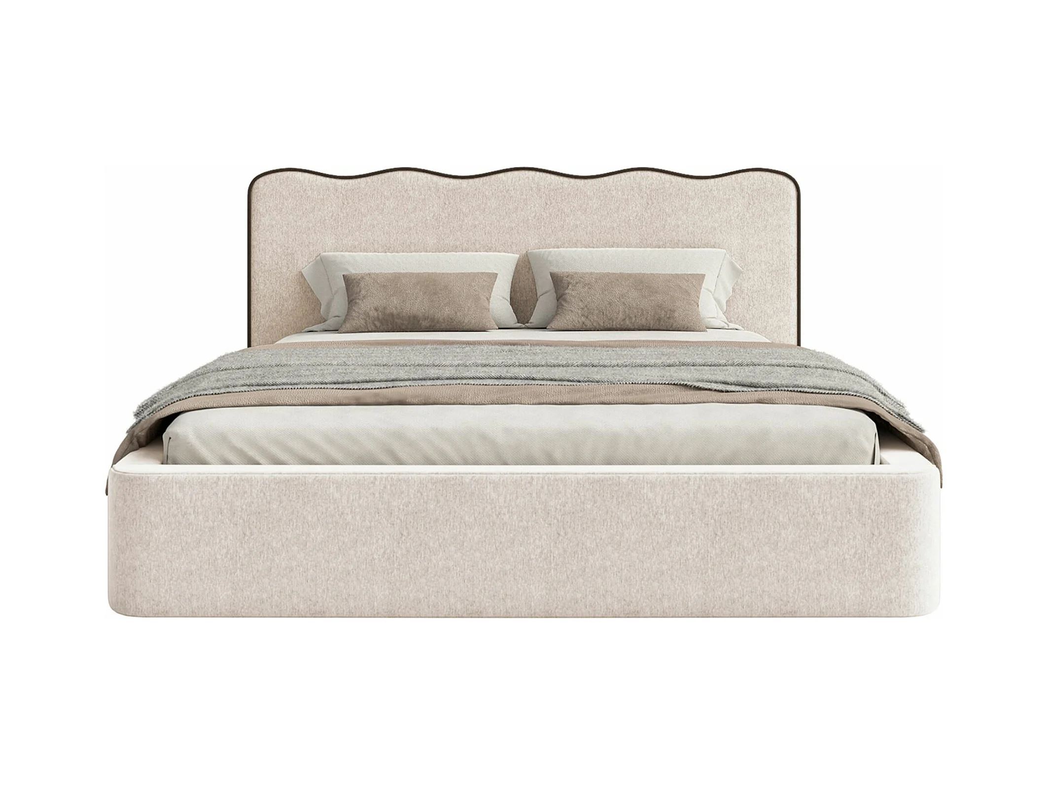Lit tapissé avec coffre – 200x200 cm – en tissu tressé beige clair – DUNEY