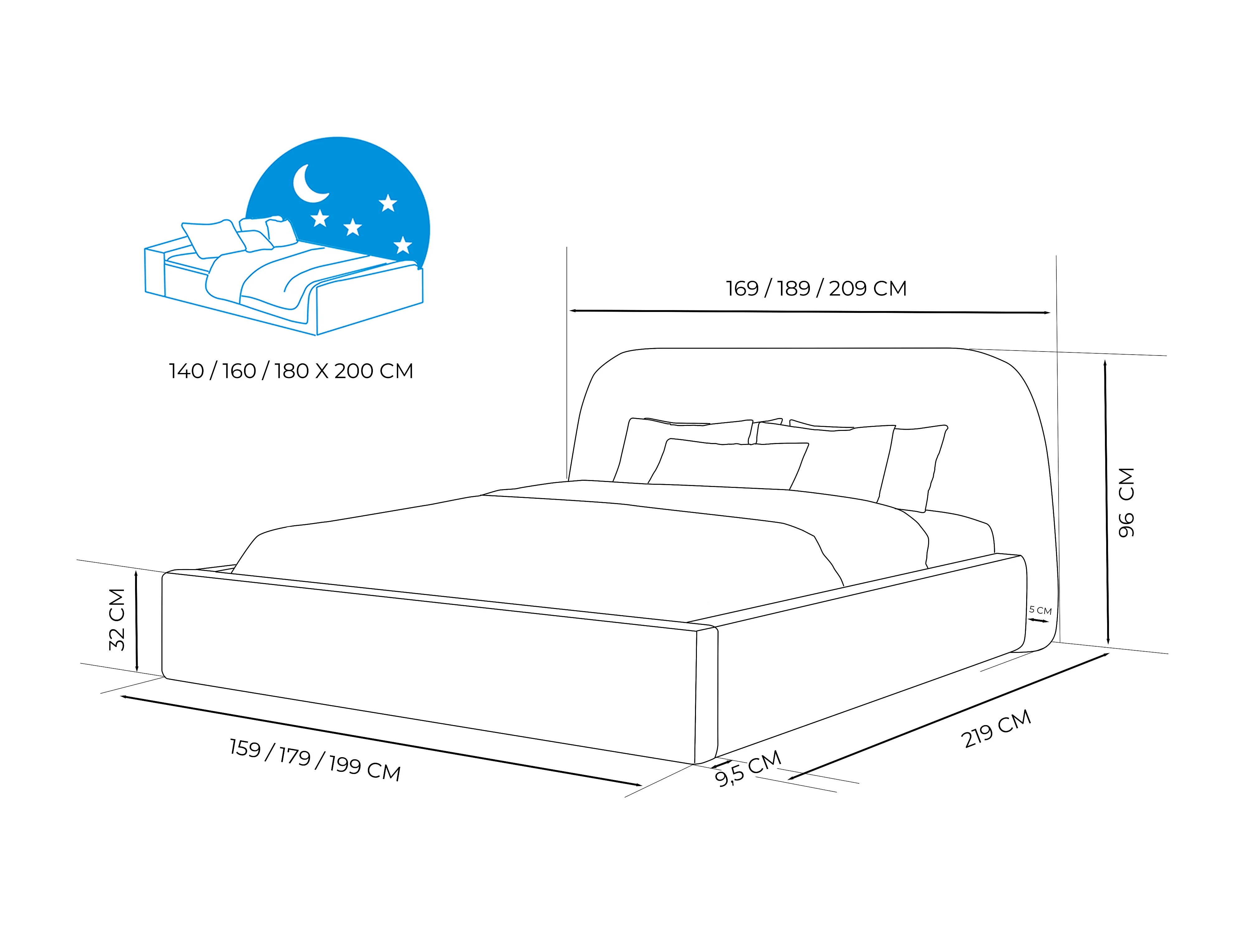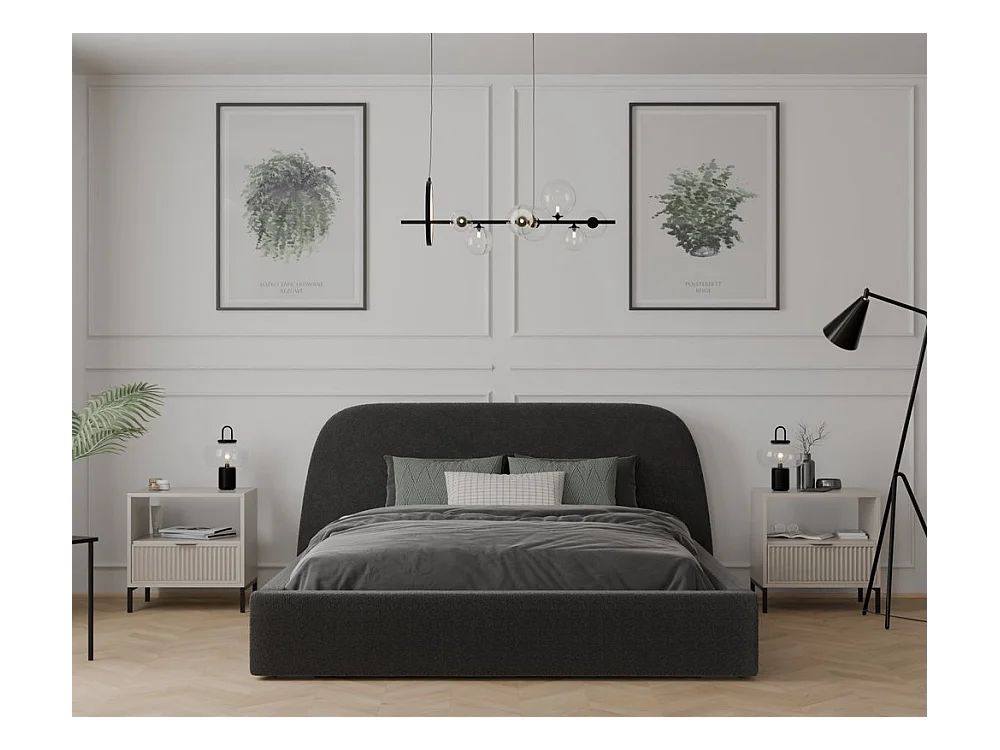 Lit tapissé CLOUD avec coffre de rangement pour la literie | 160x200 Gris anthracite