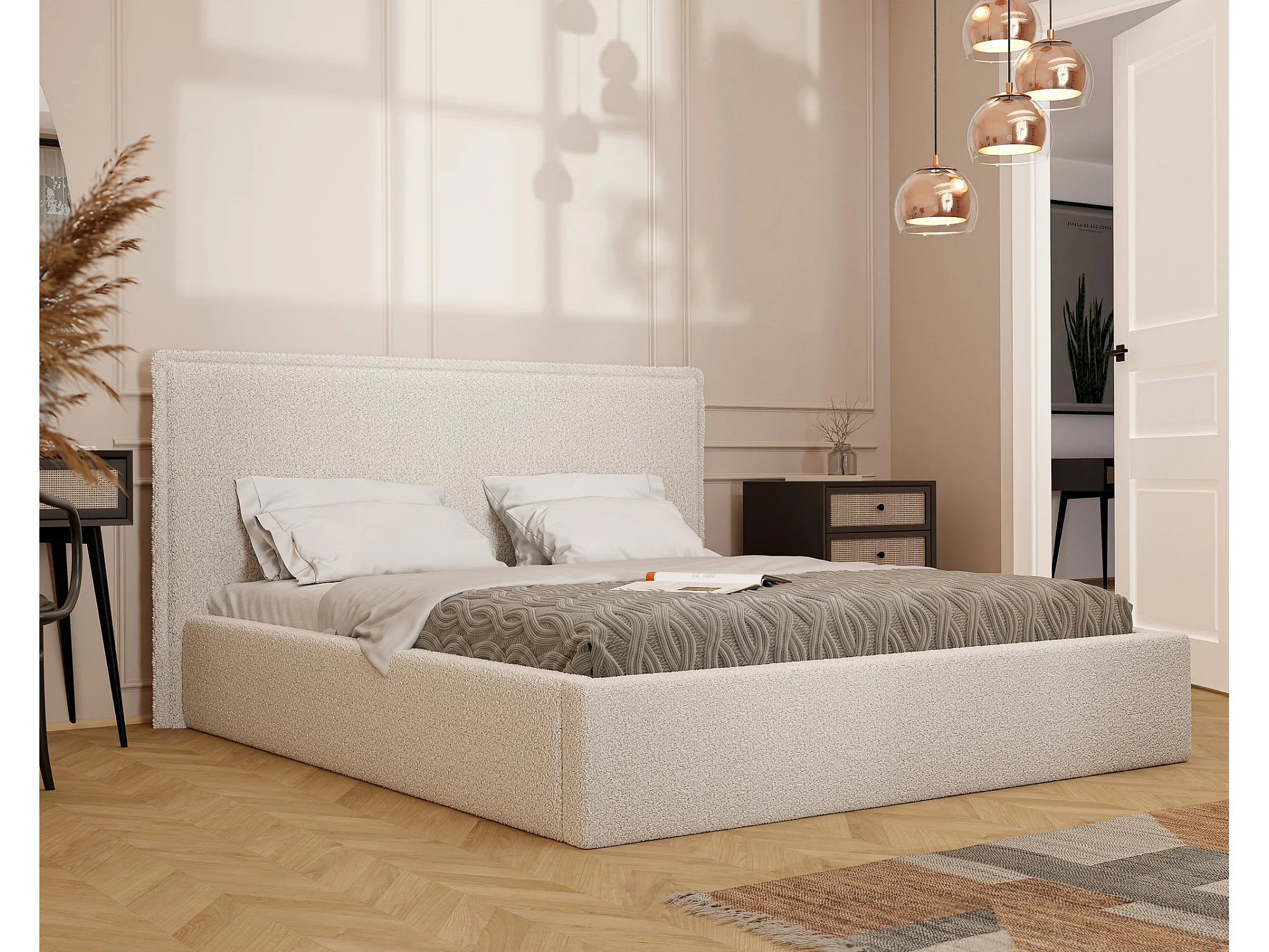 Lit tapissé COFY avec coffre de rangement pour la literie | 180x200 Crème