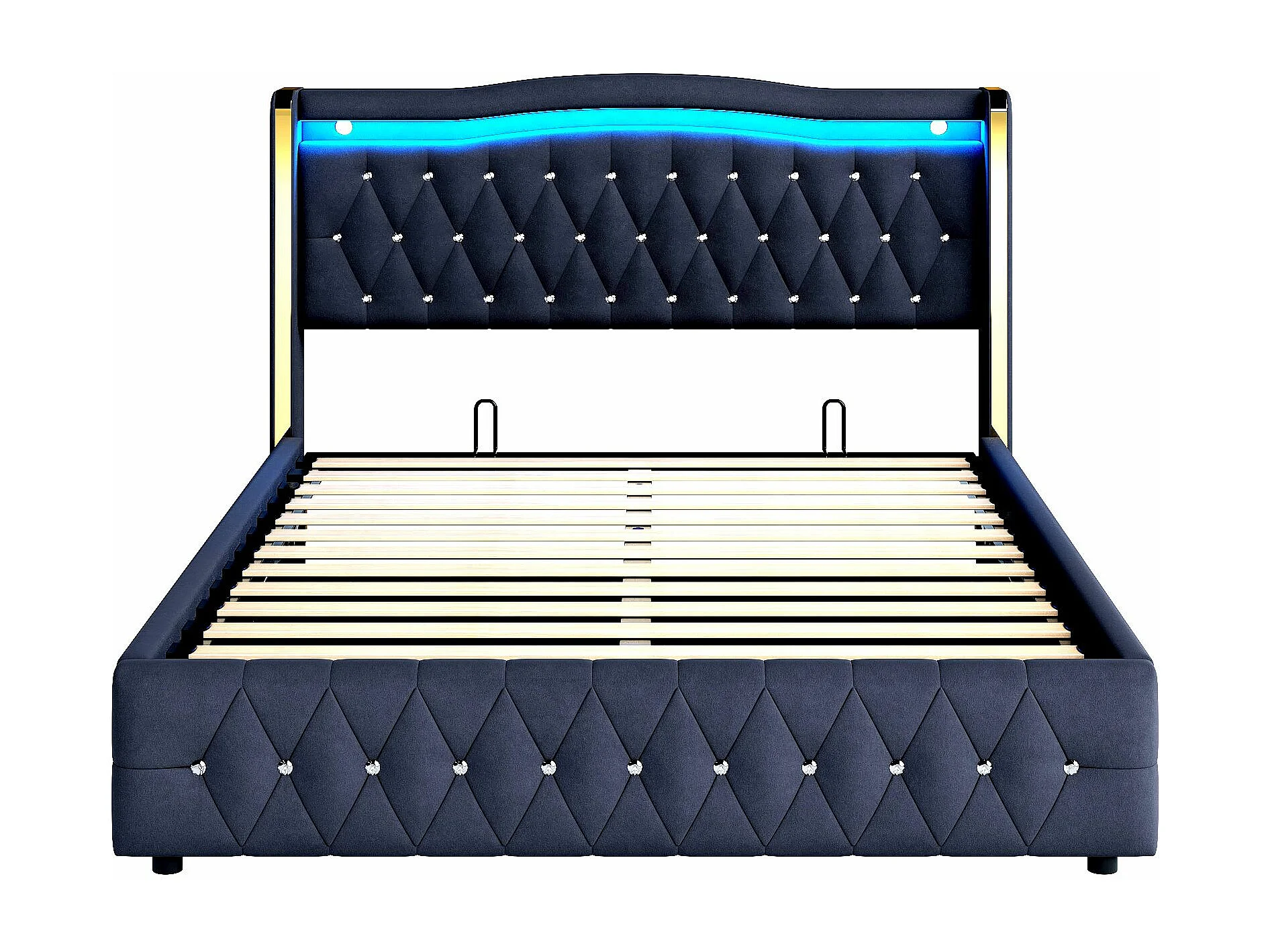 Lit tapissé lit hydraulique lit double avec bandes lumineuses et éclairage LED,lit de rangement avec hydraulique pour le rangement,160x200cm Sans matelas