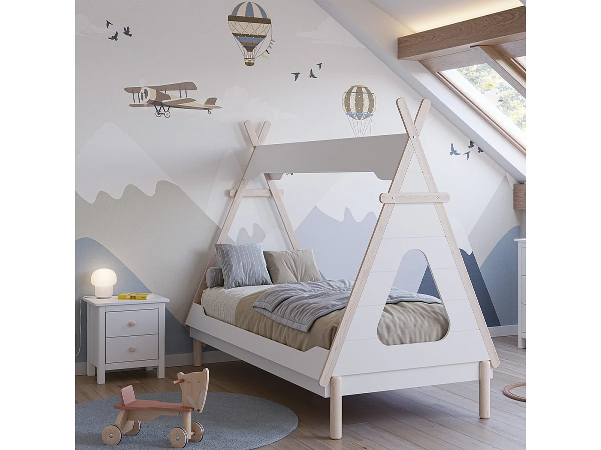 Lit tipi enfant 90x190 cm en bois blanc - Totem
