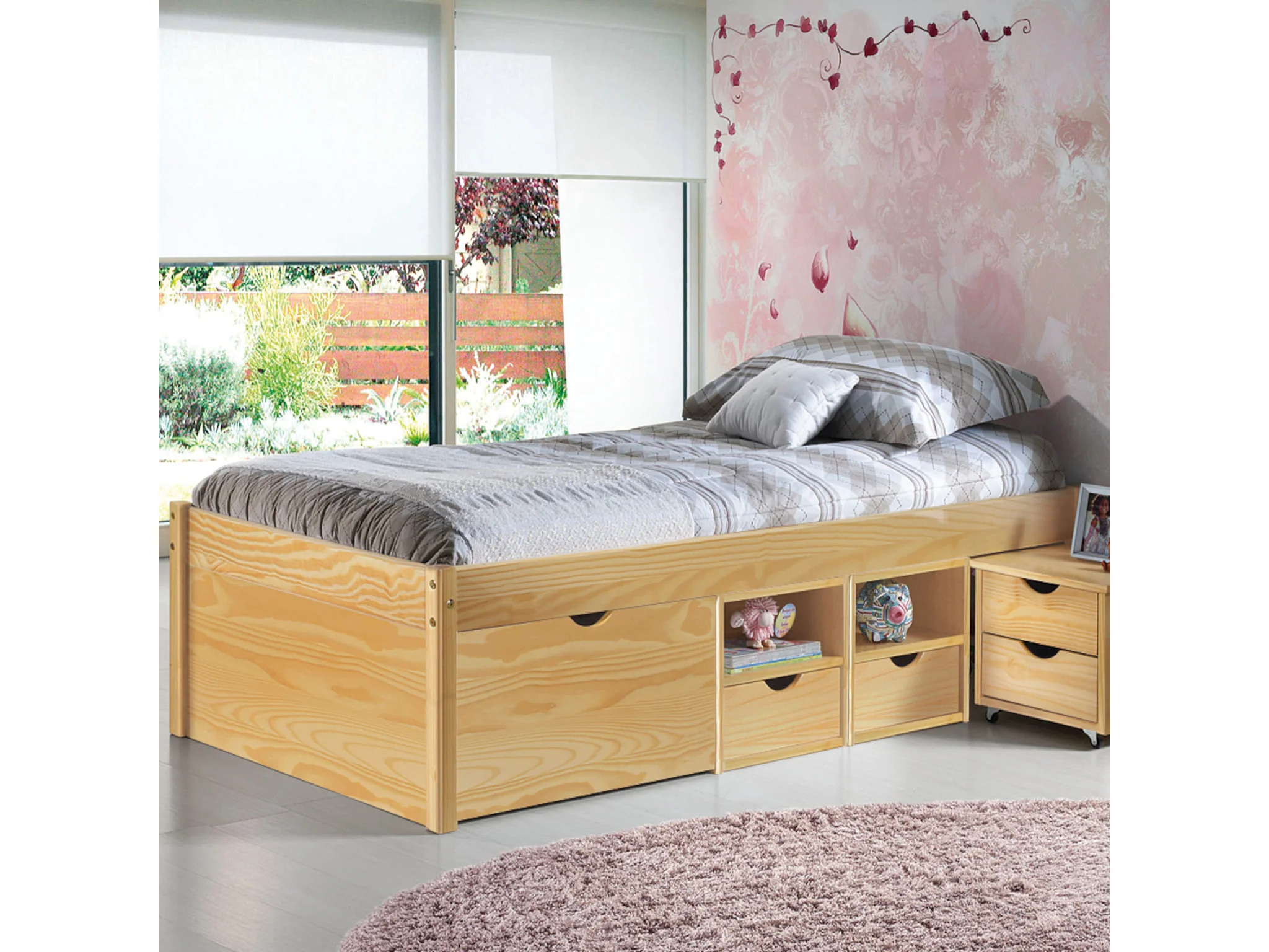 Lit tiroirs avec chevets intégrés en bois massif chêne clair 90x200 - LT17012