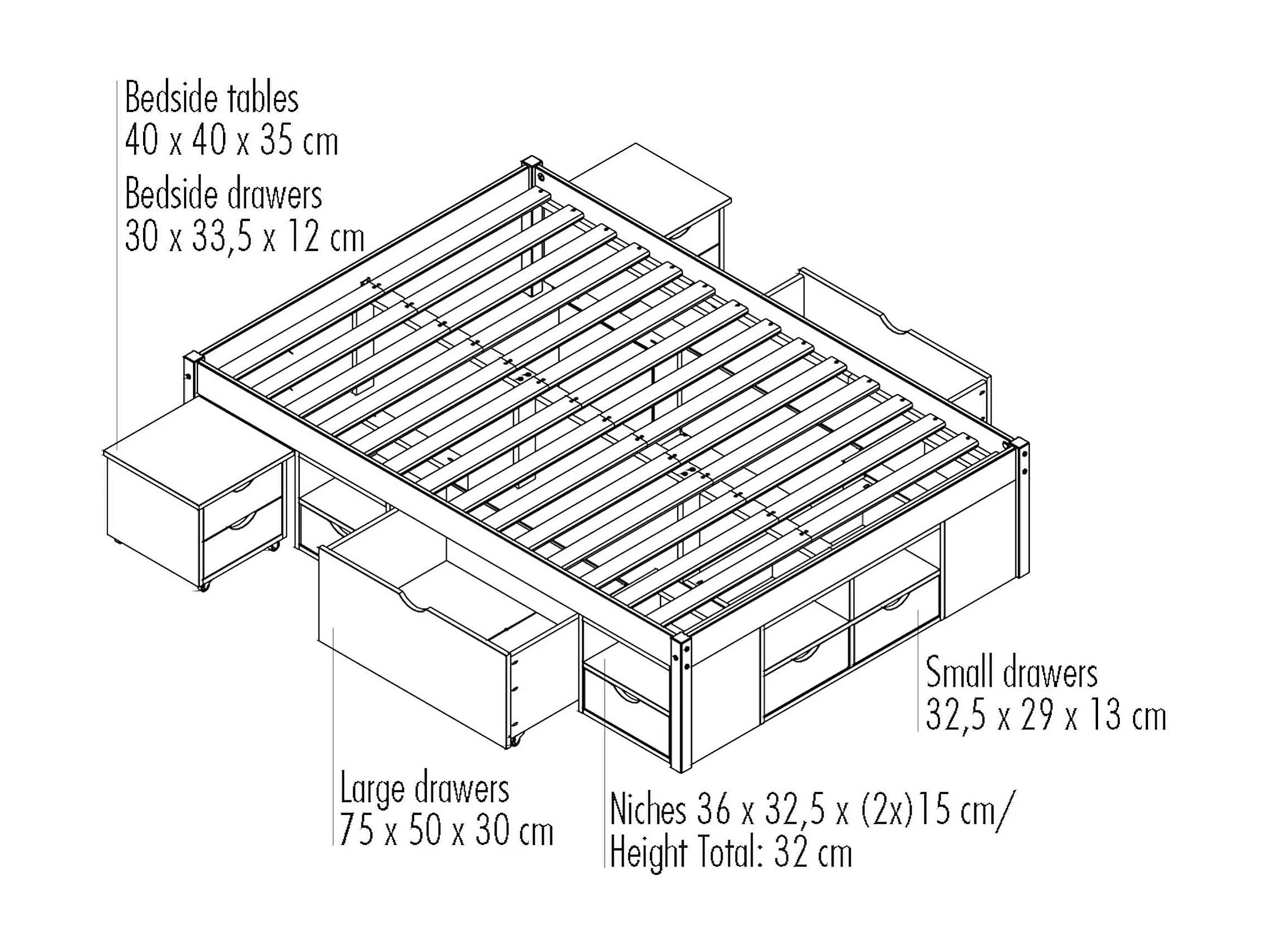 Lit tiroirs en bois massif blanc laqué 140x190 - LT12013