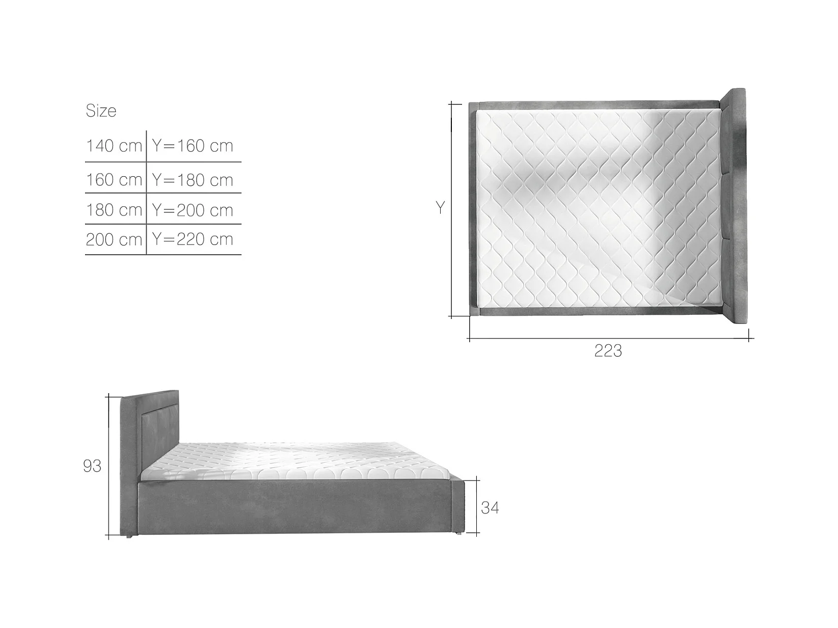 Lit tissu beige chiné grand carré capitonné Berlino - 4 tailles-200x200