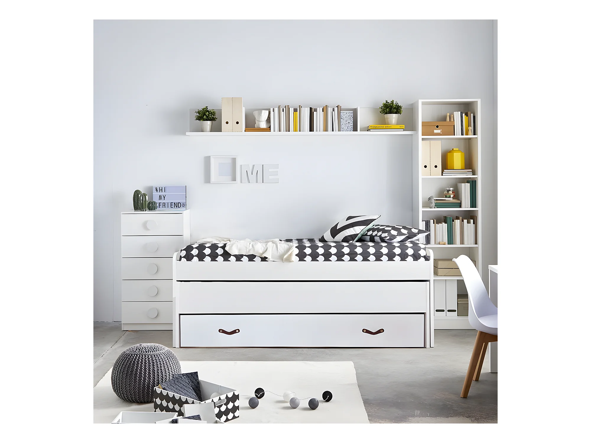 Lit triple en aggloméré blanc avec sommier 105x200cm