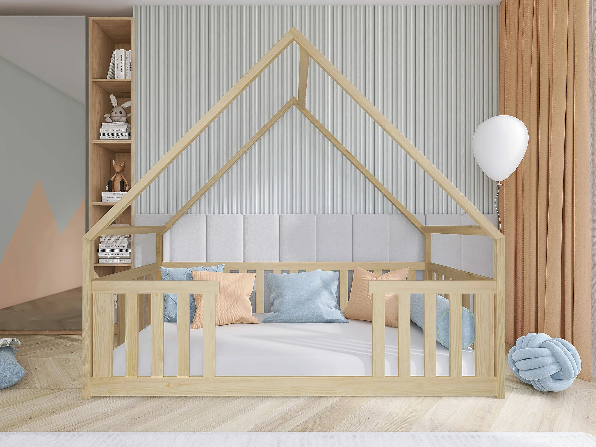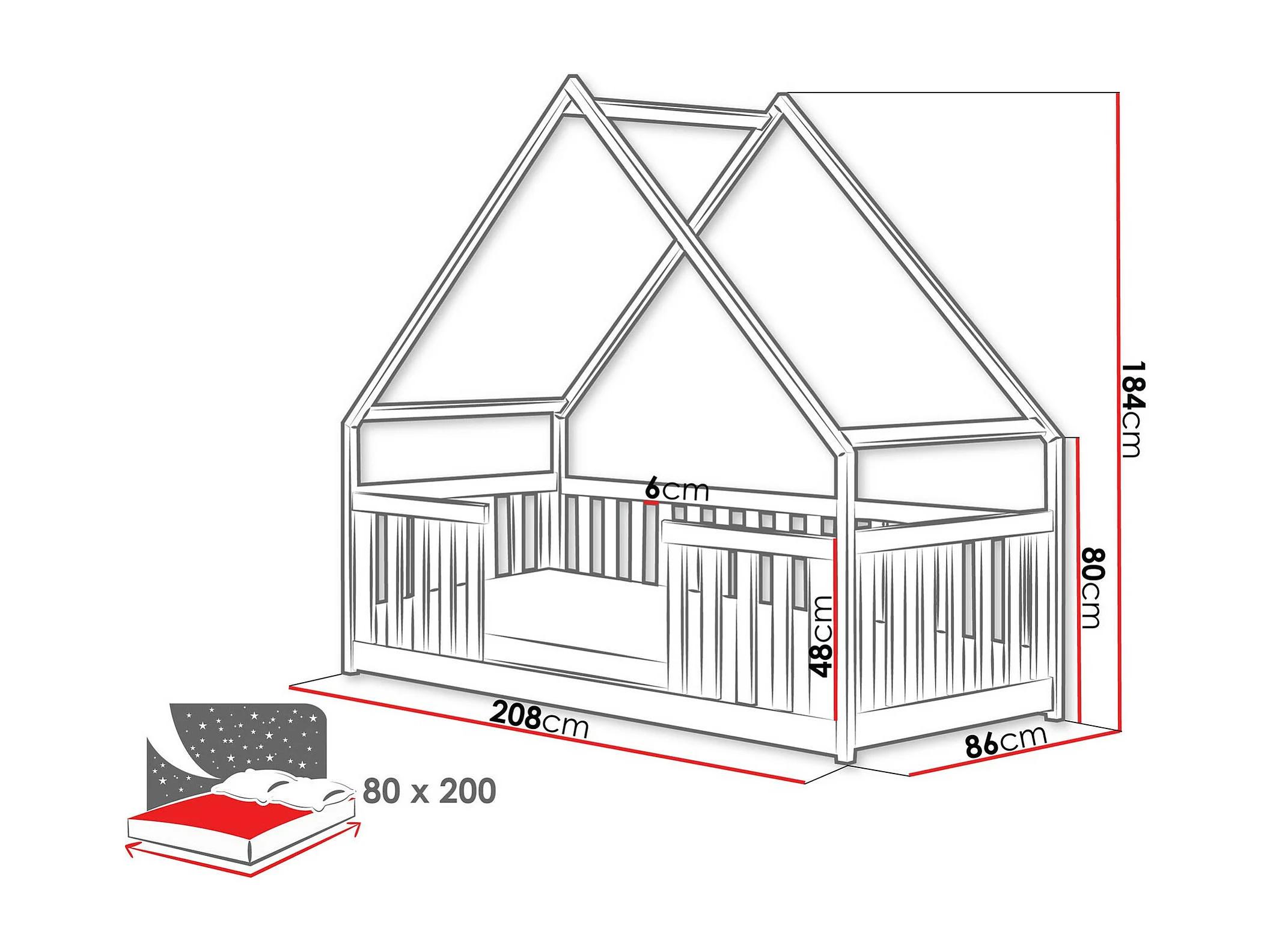 Lit Vista 114, Unique, Brun clair, 80x200, Bois, Sommier à lattes, 86x208x184cm