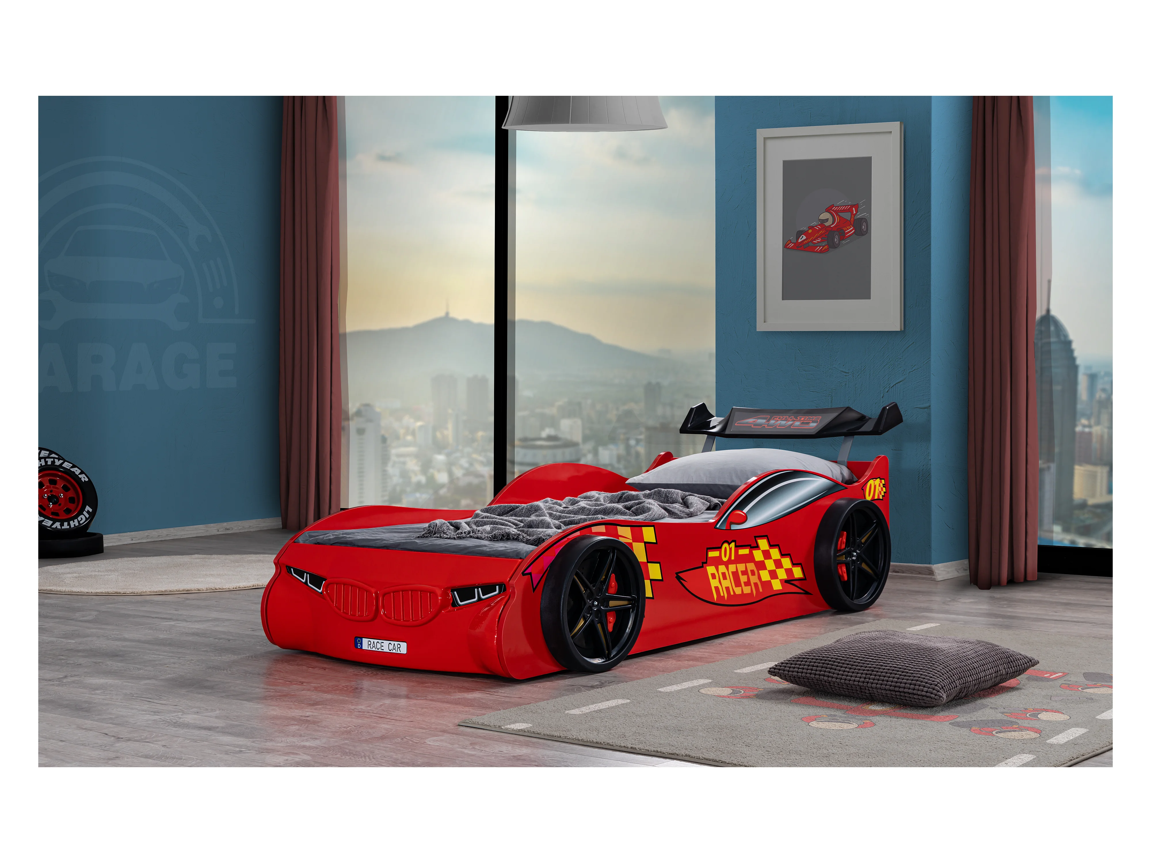 Lit voiture de sport rouge Racer 90x190