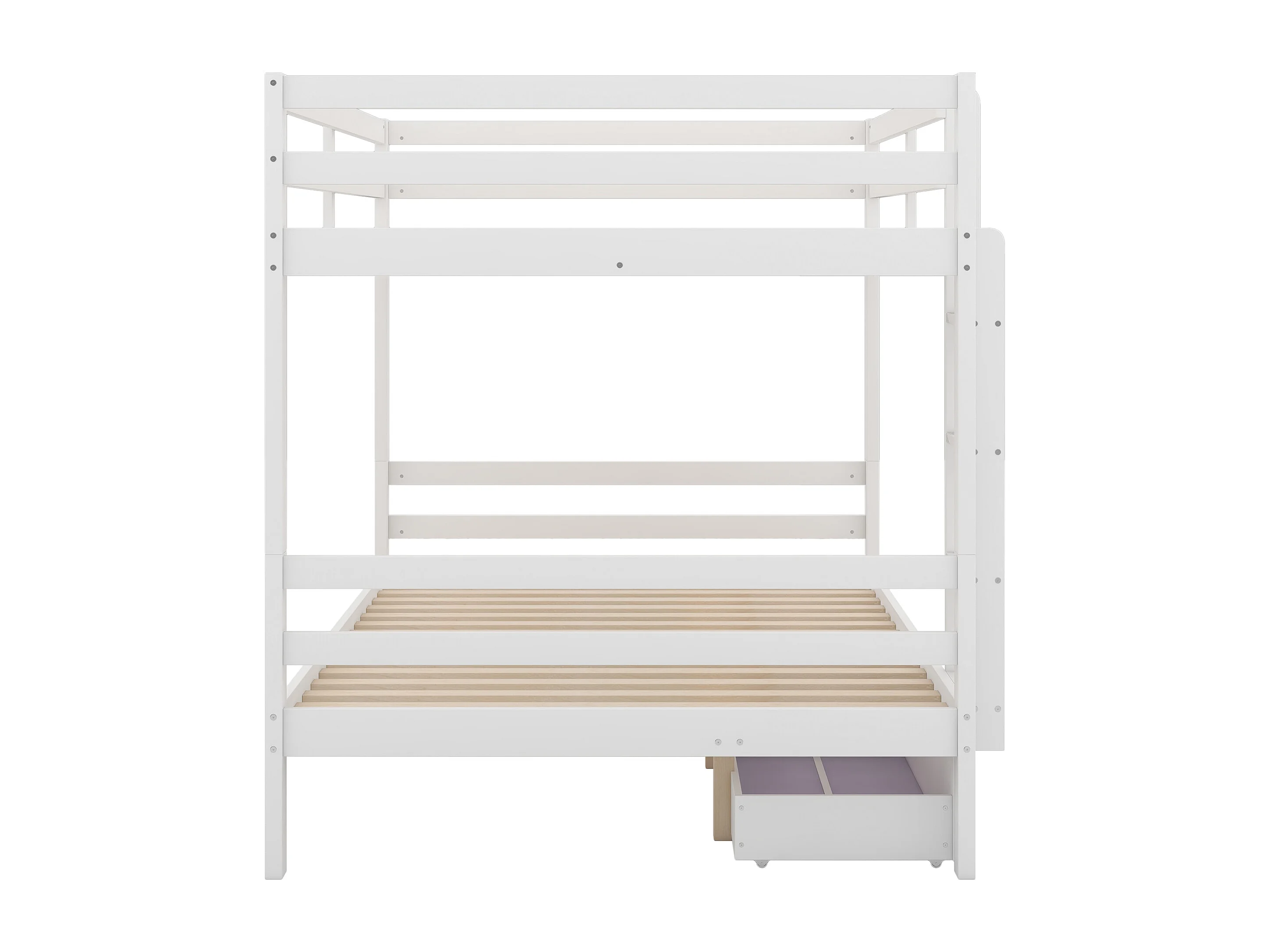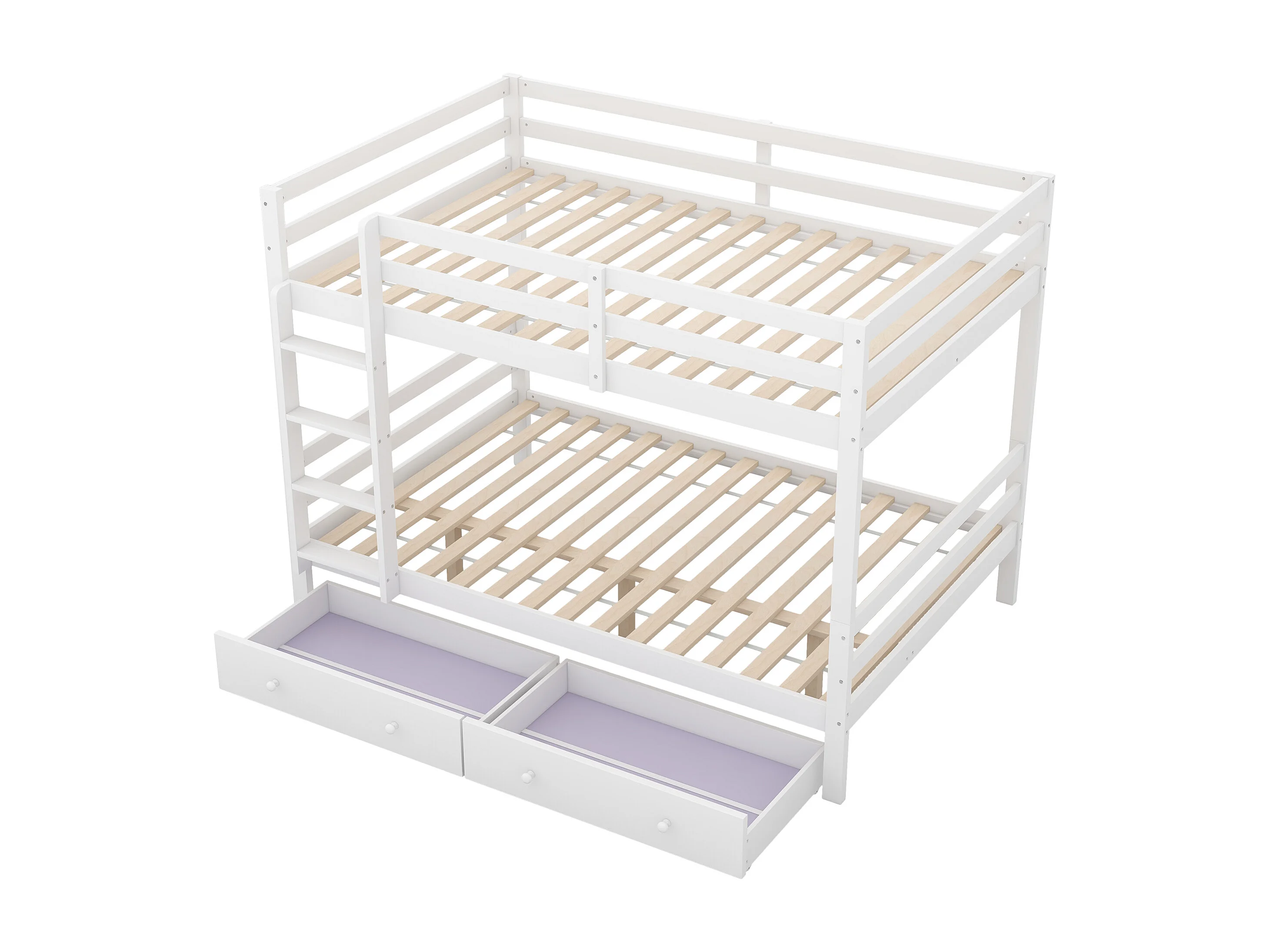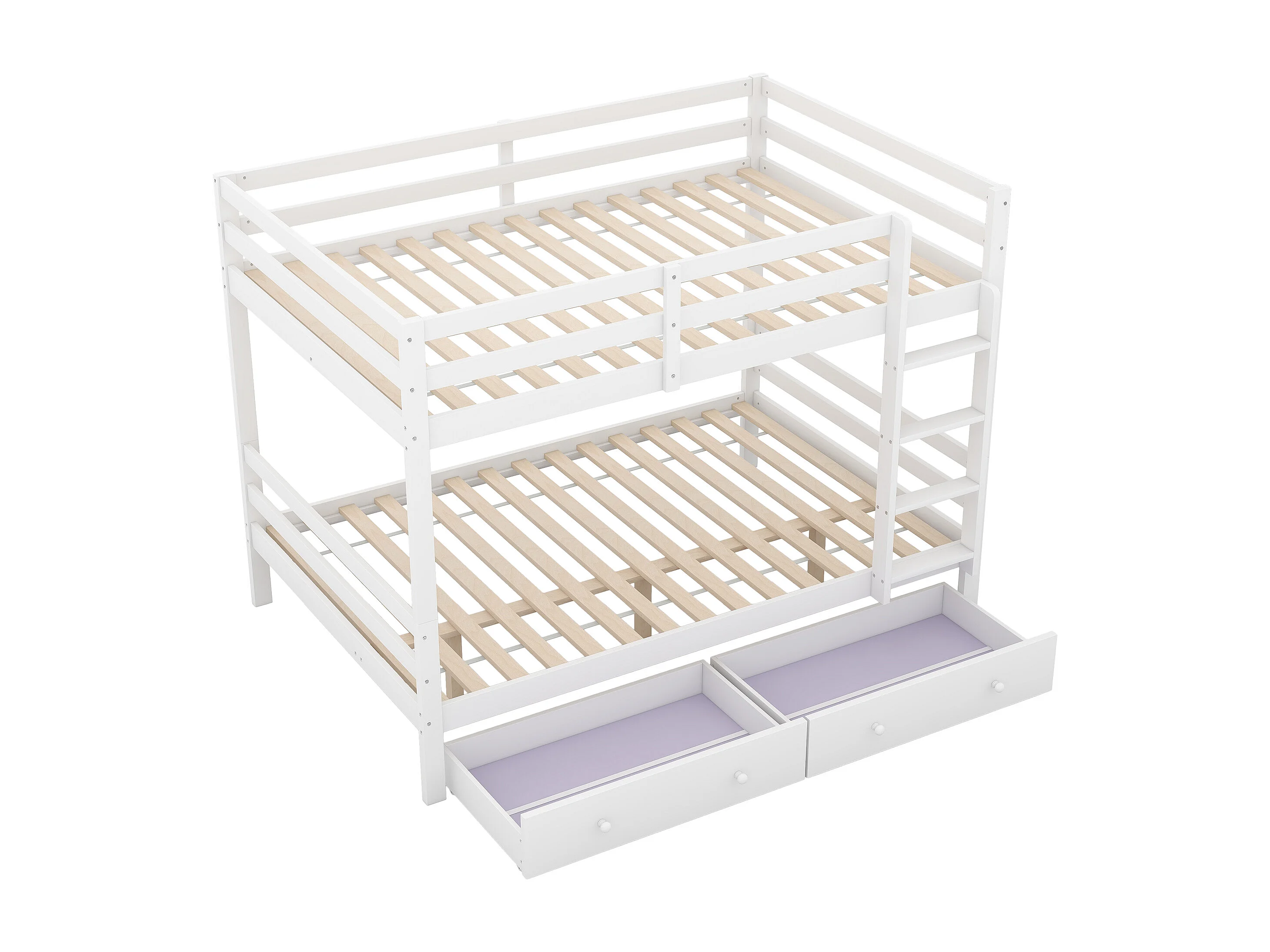 Lit superposé 2 places 140x200 cm lit double avec tiroirs et garde-corps hauts - bois de pin blanc - sans matelas