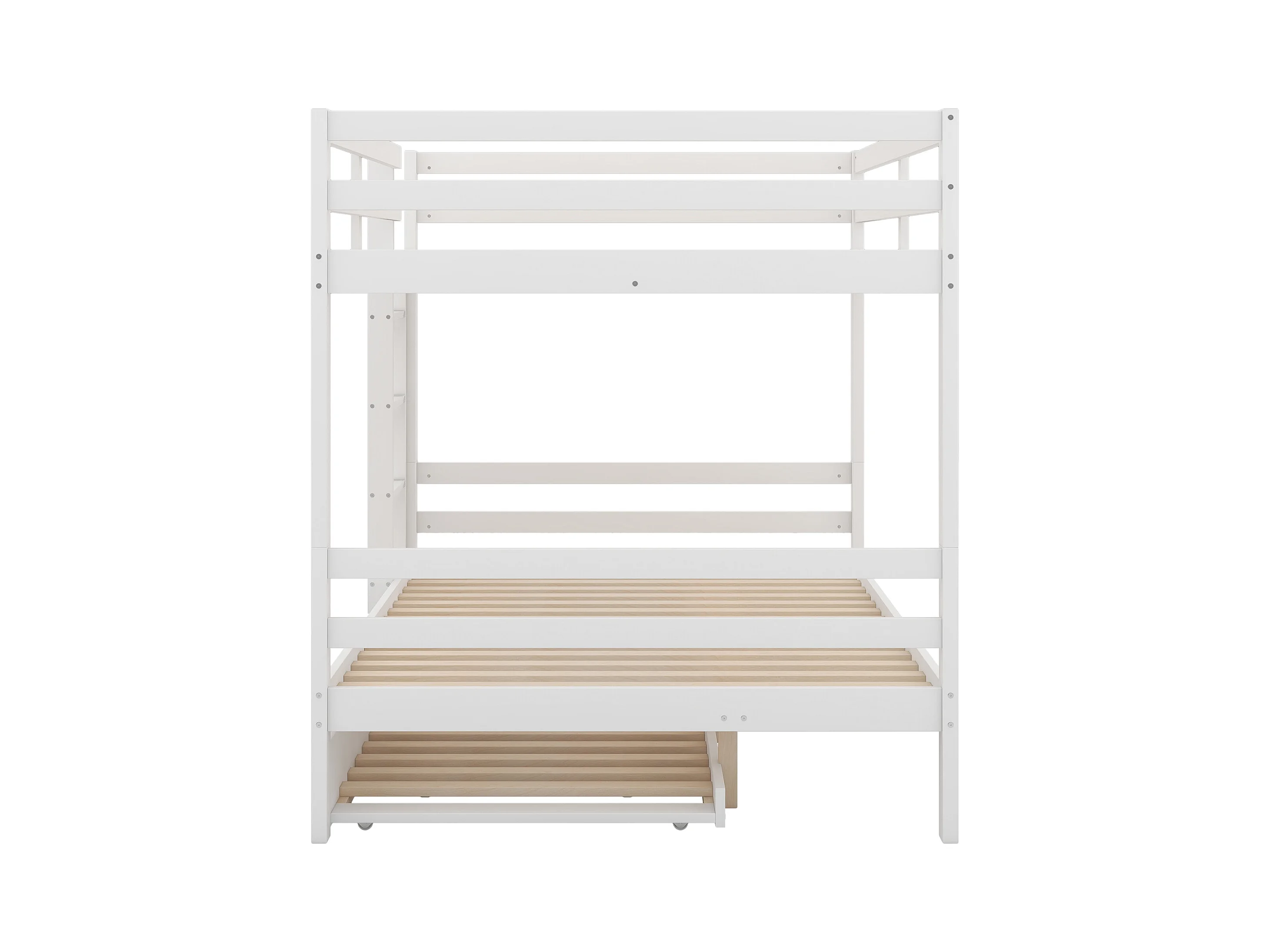 Lit superposé 140x200cm, lit enfant avec lit gigogne et escalier stable - bois de pin - blanc - sans matelas