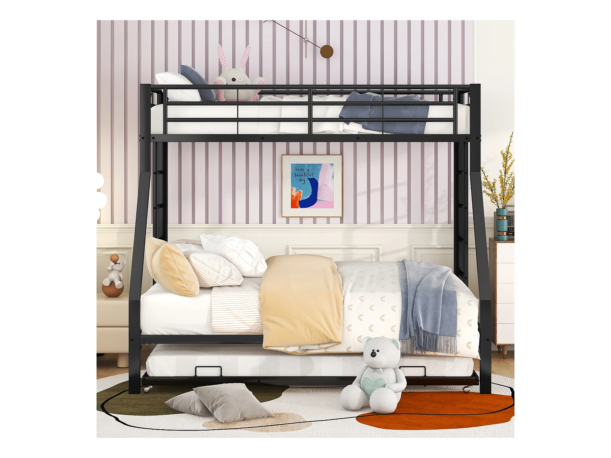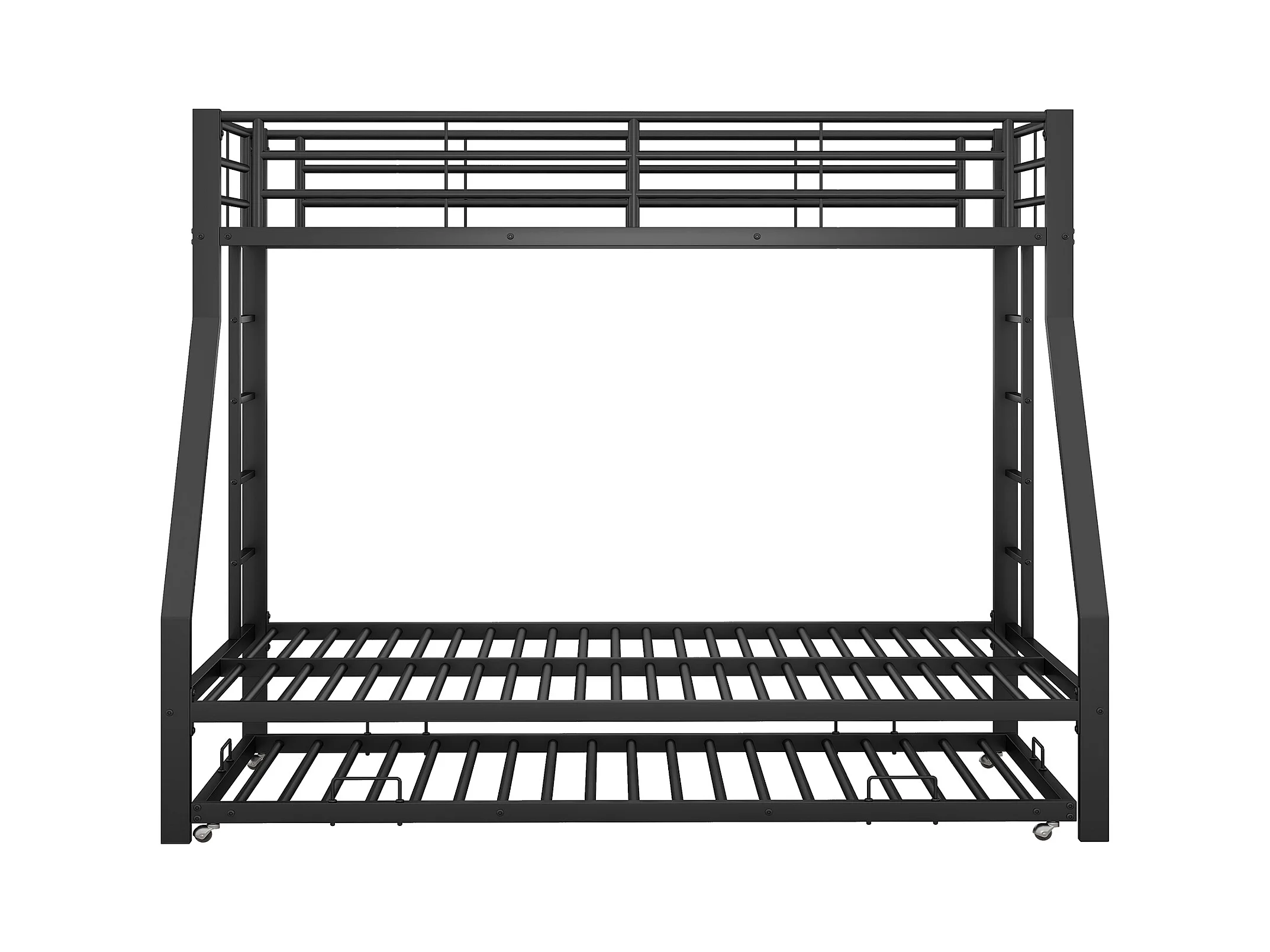 Lit superposé 90/140x200 cm lit enfant 3 places avec lit gigogne 90x190 cm et 3 sommiers - métal noir - sans matelas
