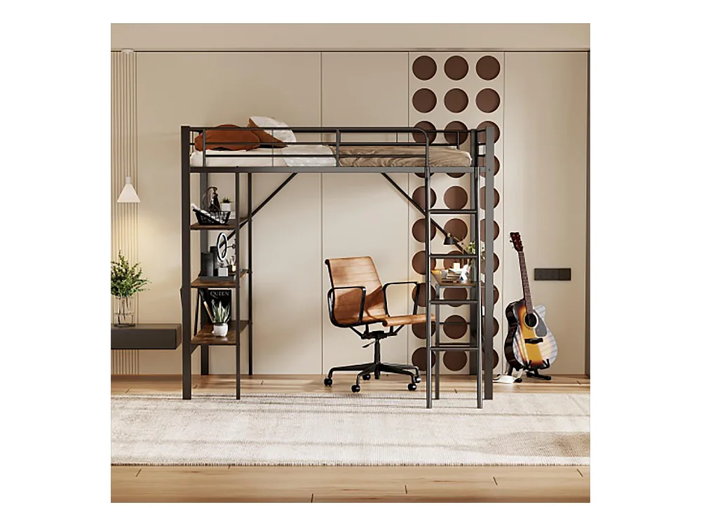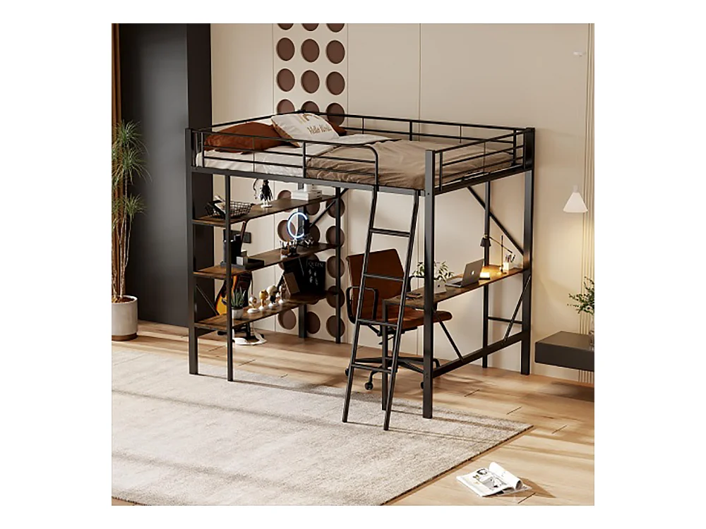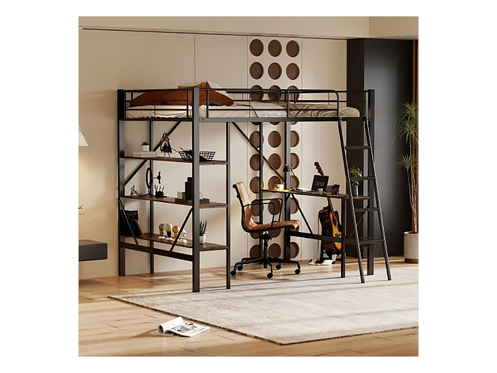 Lits superposés 90x200cm lit mezzanine avec bureau et trois grandes étagères noir