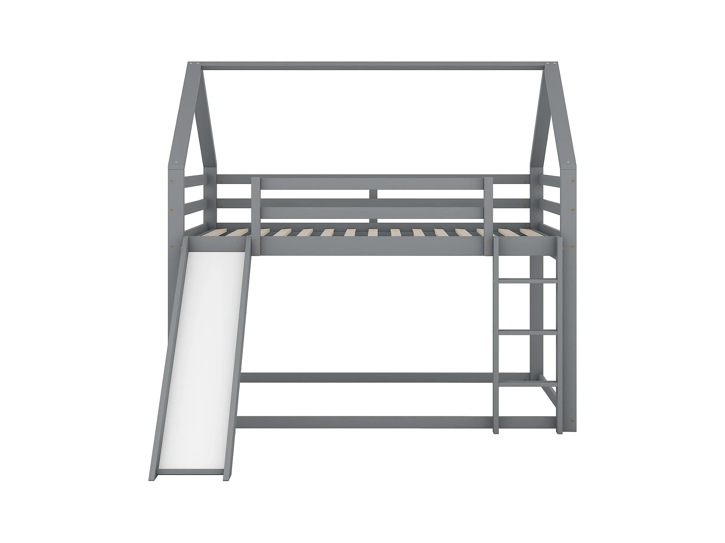 Lits Superposés Enfant Toboggan et Échelle - Pin Massif - 140 X 200 cm - Gris - Sans Matelas