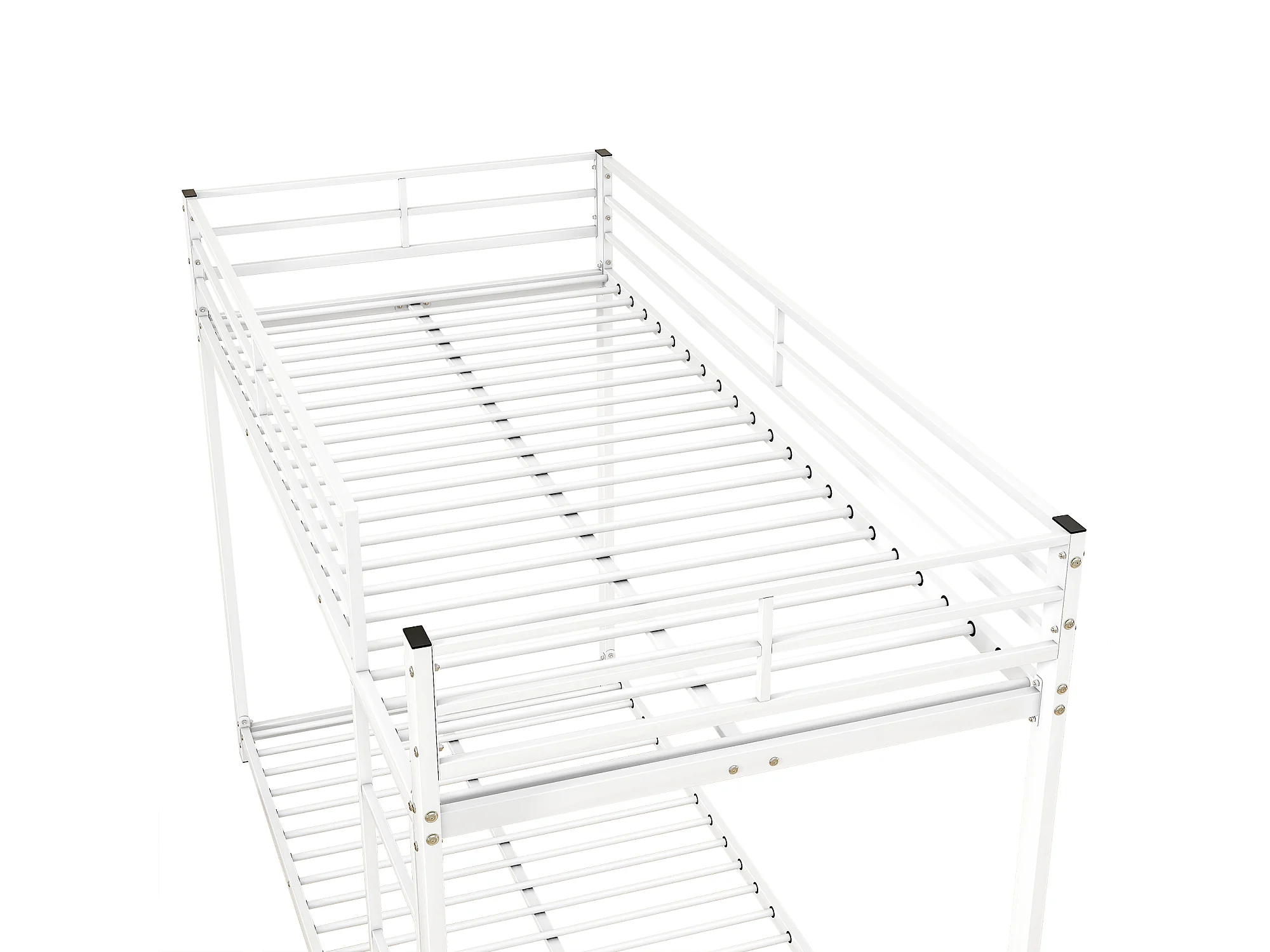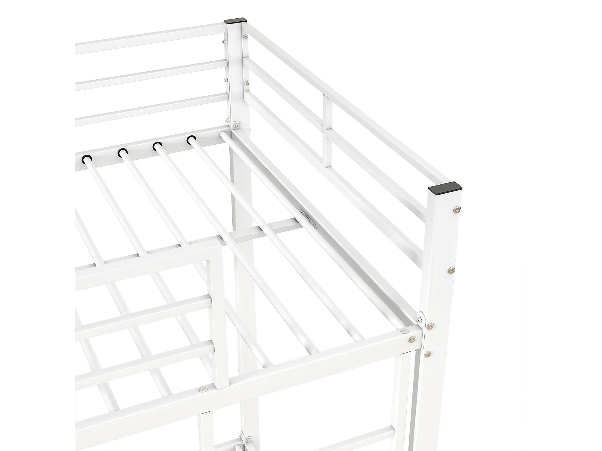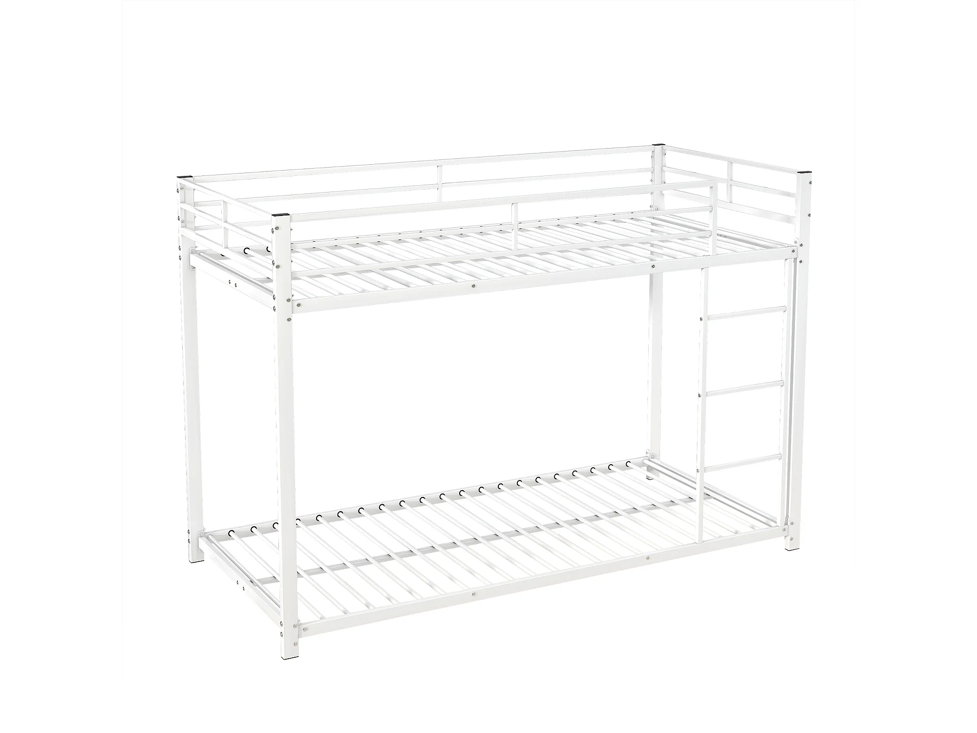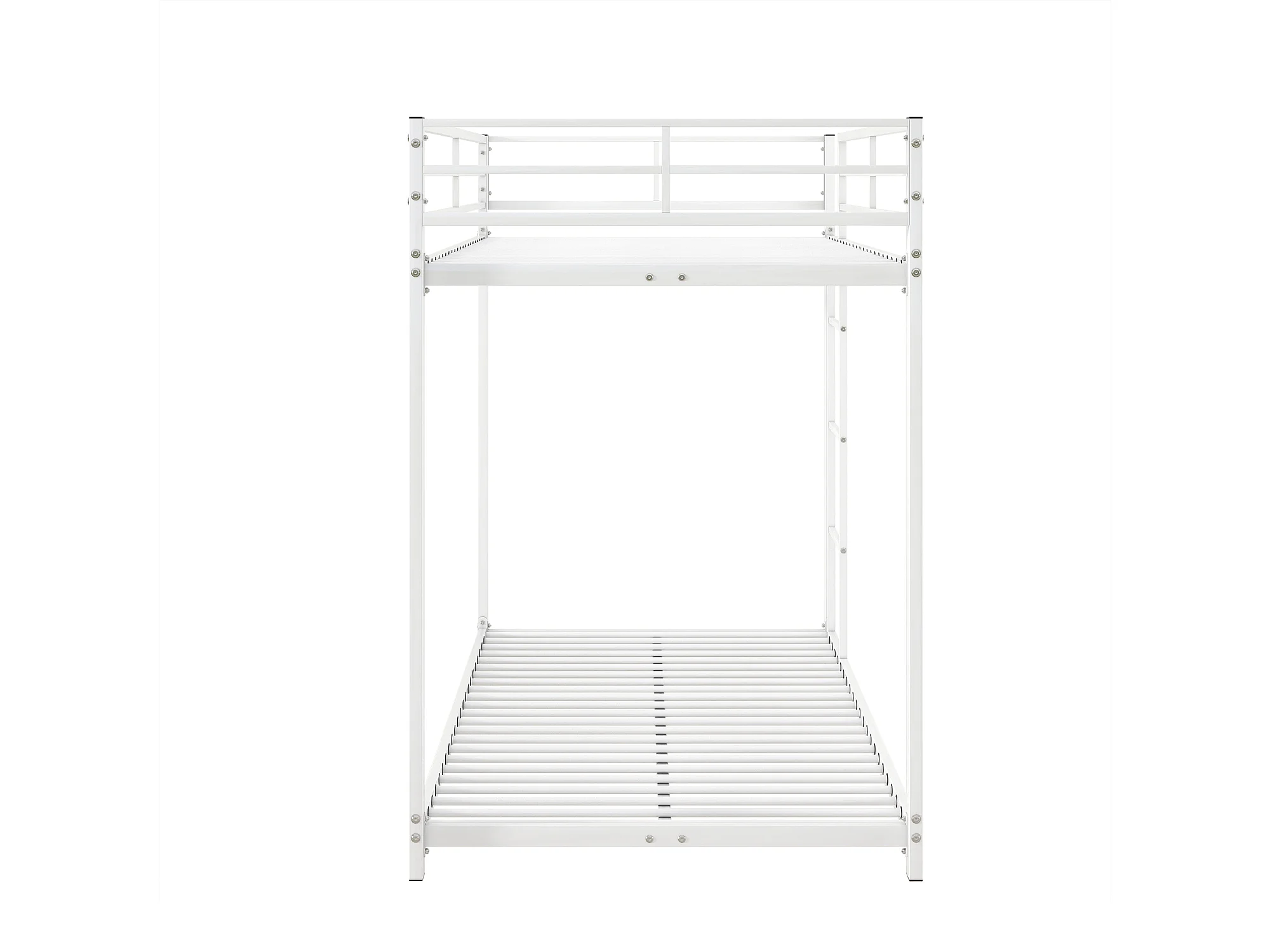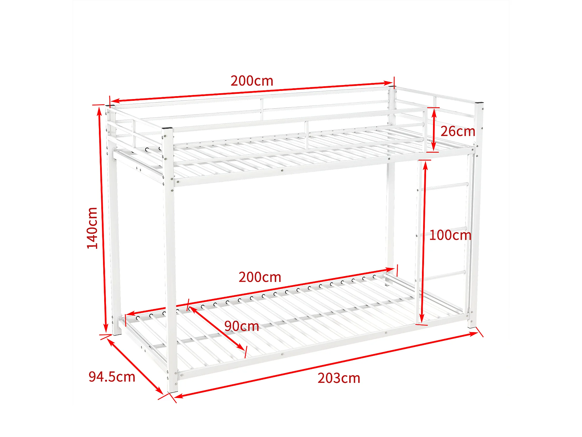 Lit superposé 90x200 cm lit enfant 2 places avec barrière et sommier à lattes en métal - blanc - sans matelas