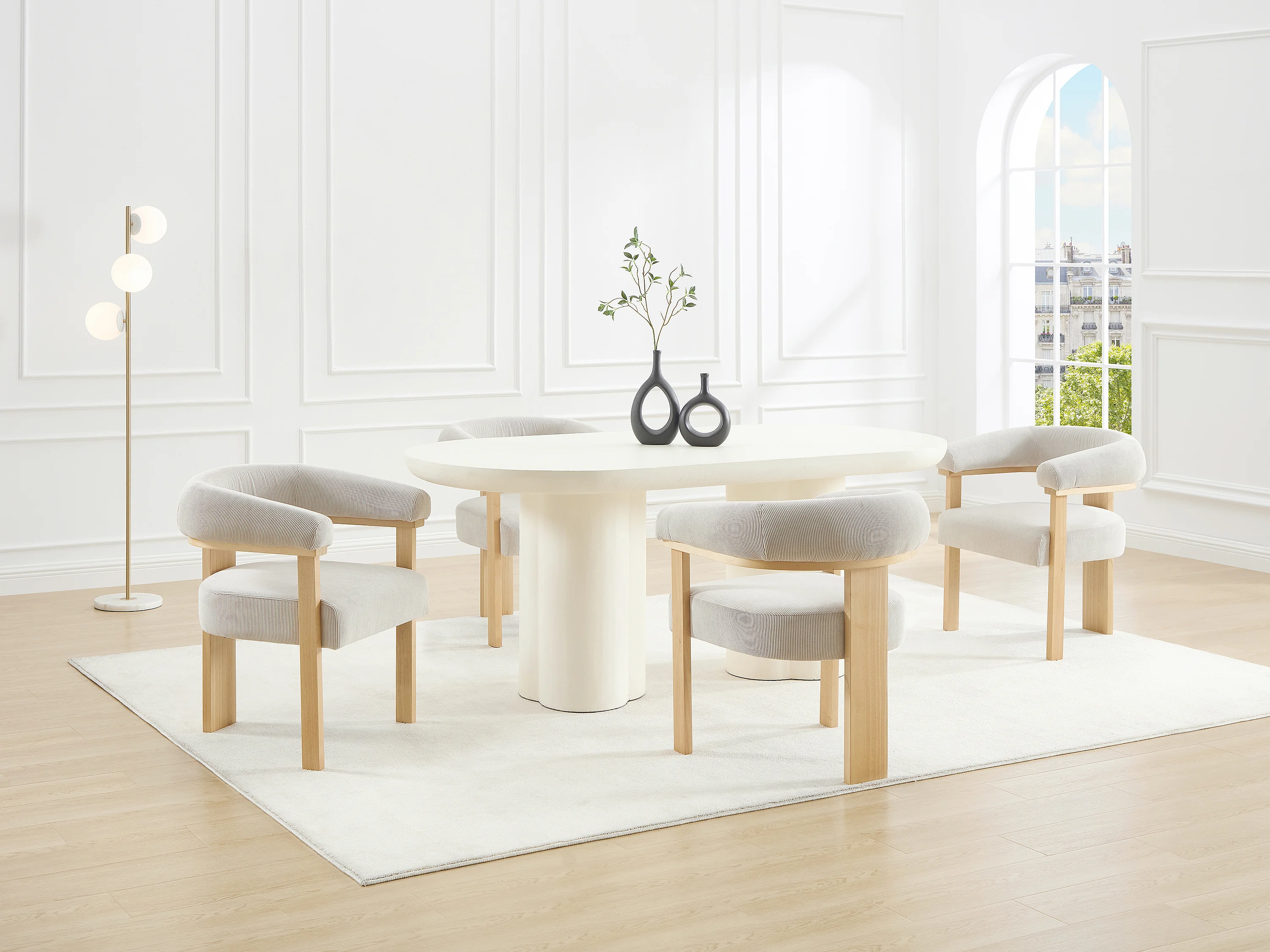 Chaise avec accoudoirs en velours côtelé et bois d'hévéa naturel - Beige - LIVELIA de Pascal MORABITO