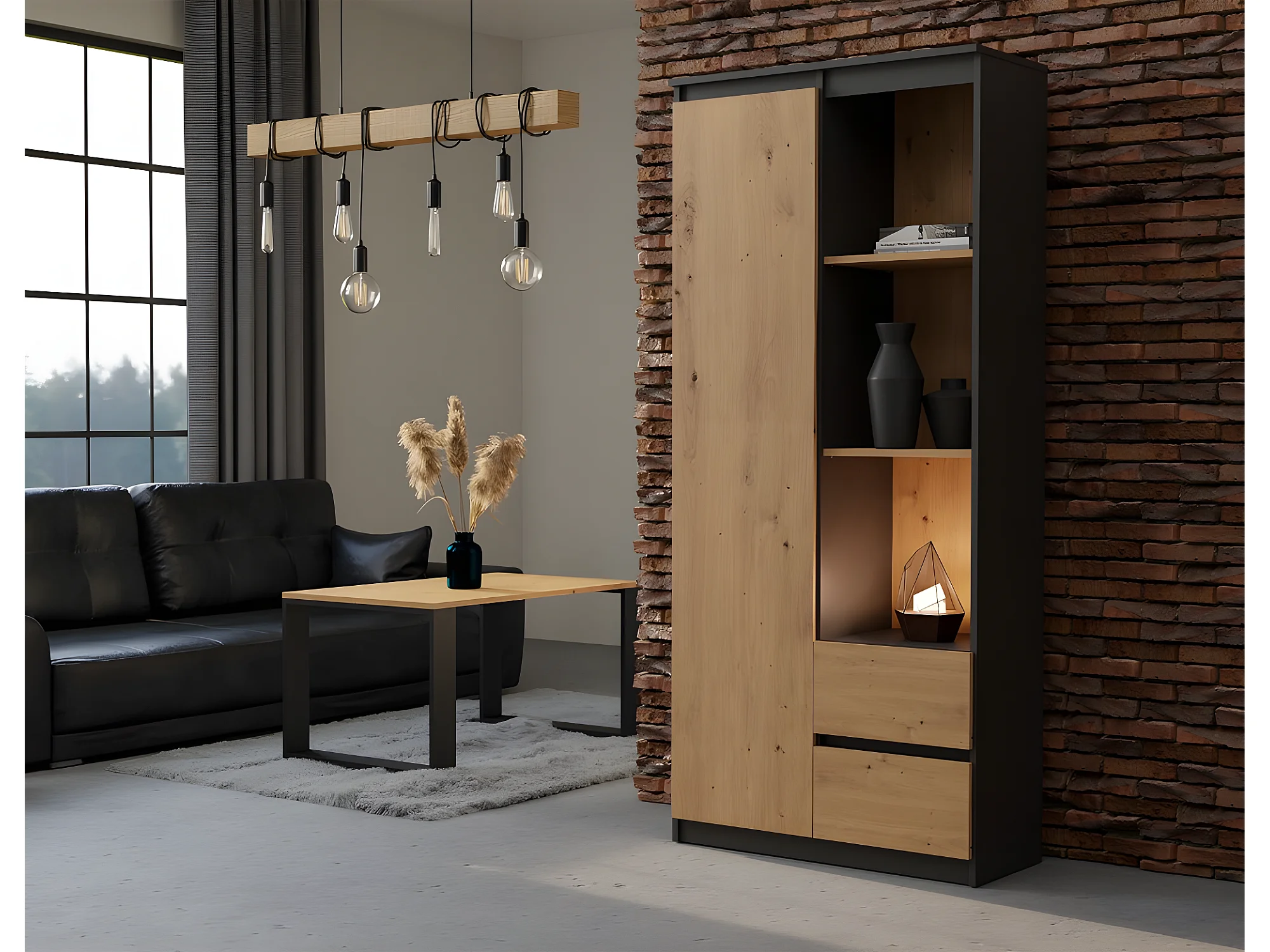 LIVORNO - Bibliothèque 1 porte + 2 tiroirs bureau chambre - 180x80x35 - Meuble de rangement