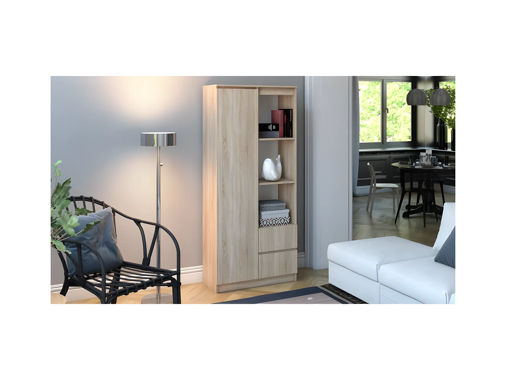 LIVORNO - Bibliothèque 7 niches + 2 tiroirs bureau chambre - 180x80x35 - Meuble de rangement