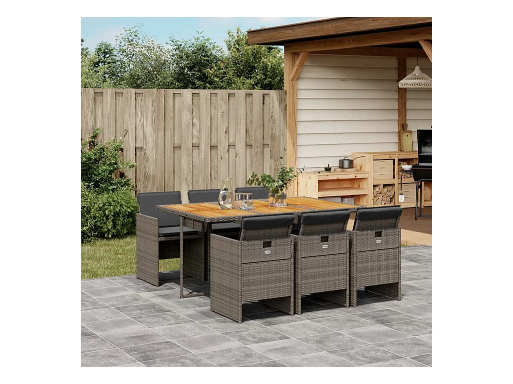 Ljungby Ensemble à manger de jardin et coussins 7 pcs gris rotin