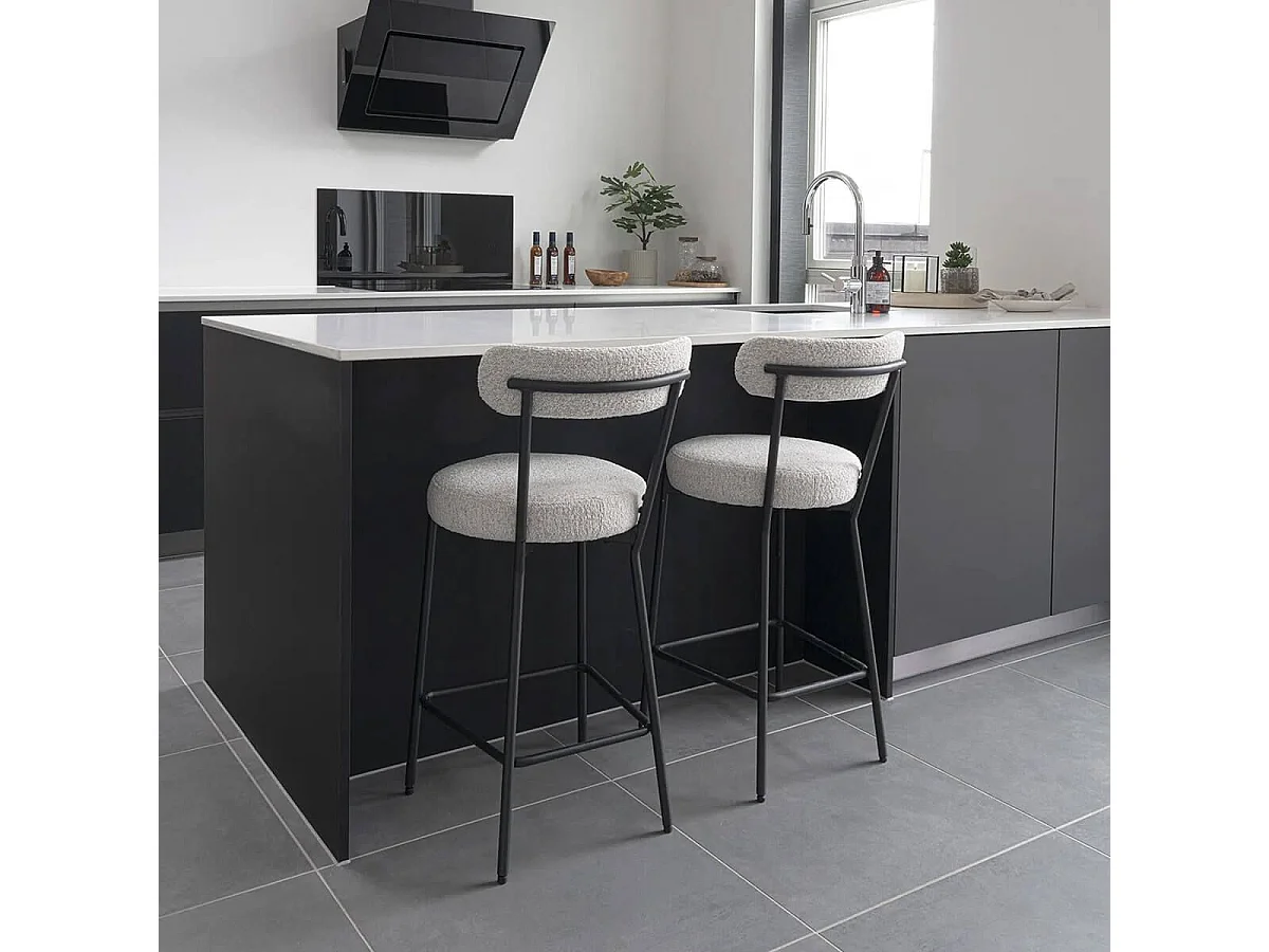 LOANA - Lot de 4 Chaises Hautes Tissu Bouclé Blanc Chiné Dossier et Pieds Métal Noir