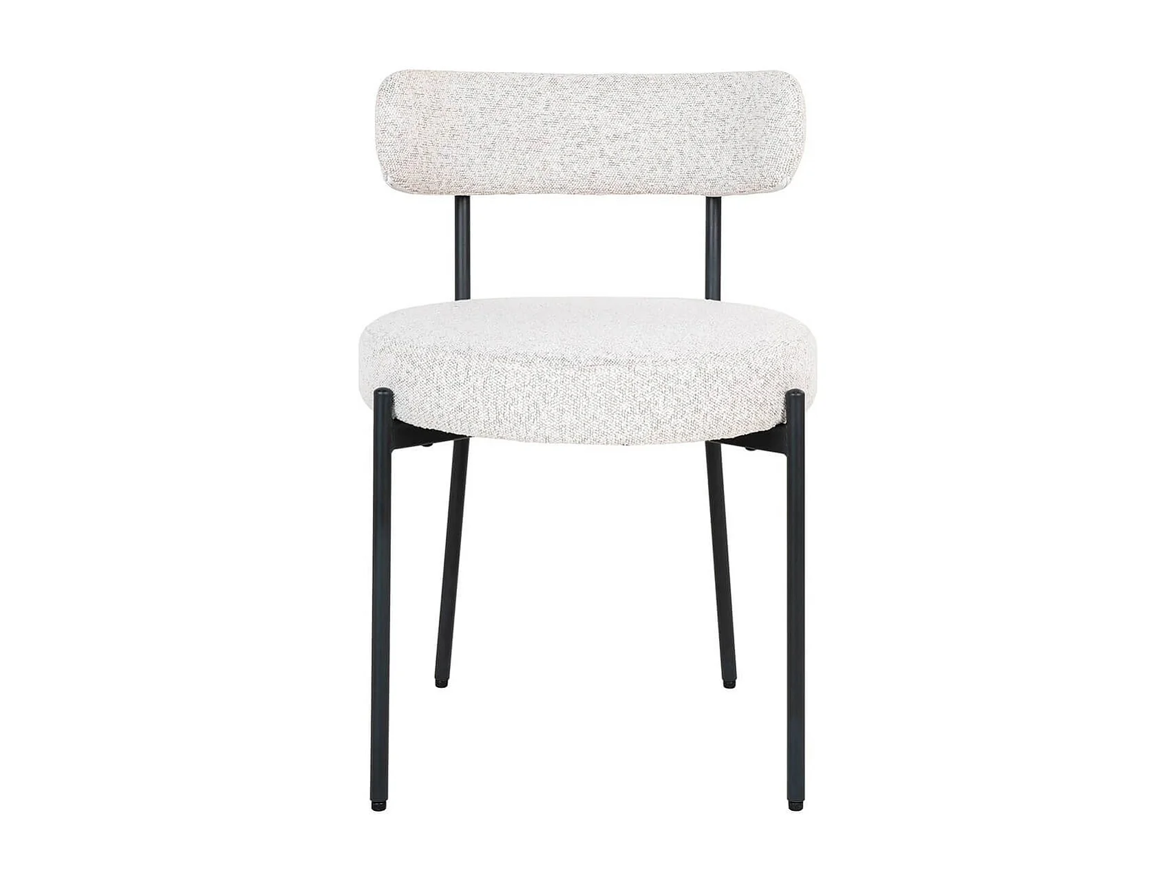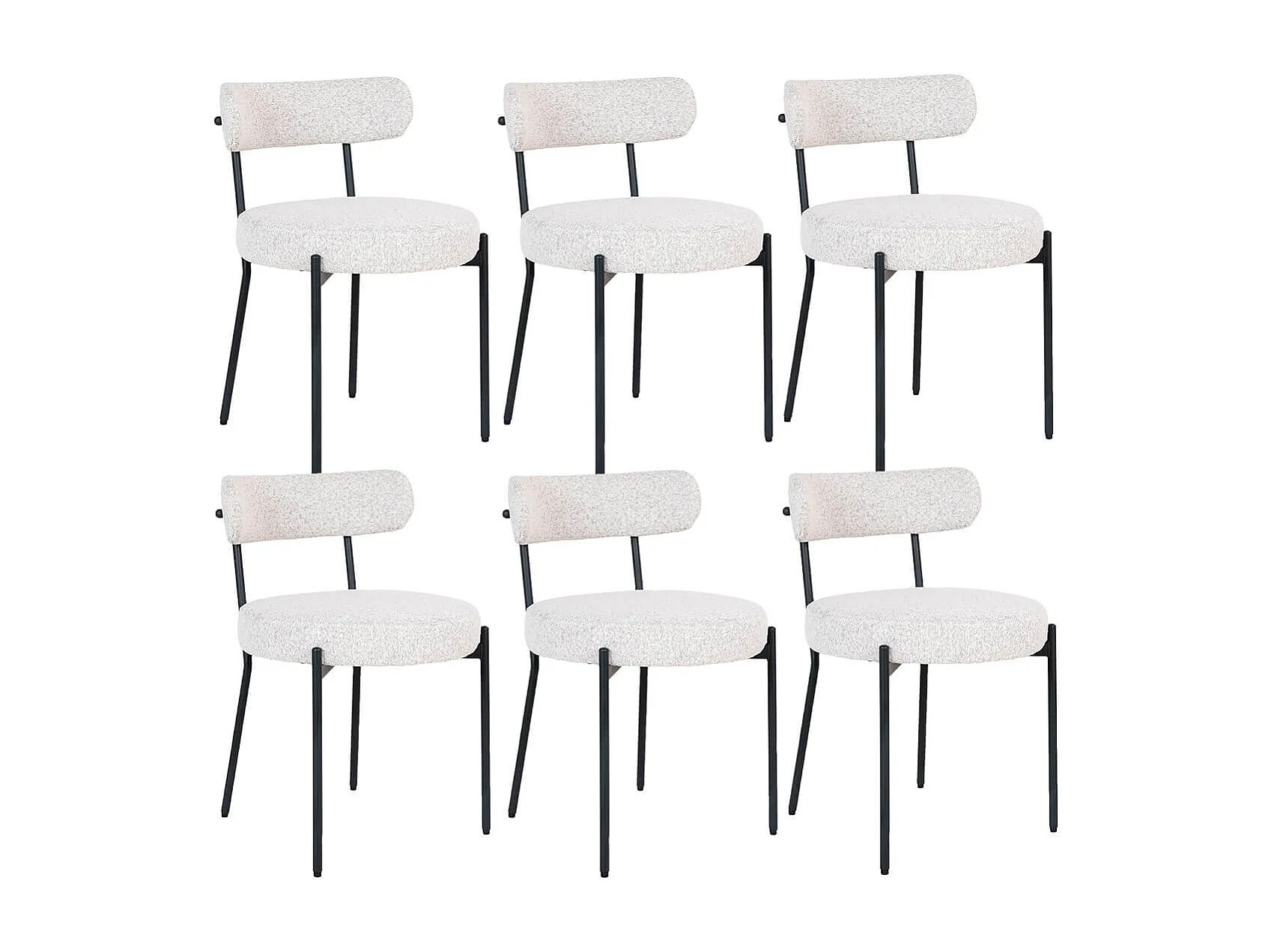LOANA - Lot de 6 Chaises Tissu Bouclé Blanc Chiné Dossier et Pieds Métal Noir