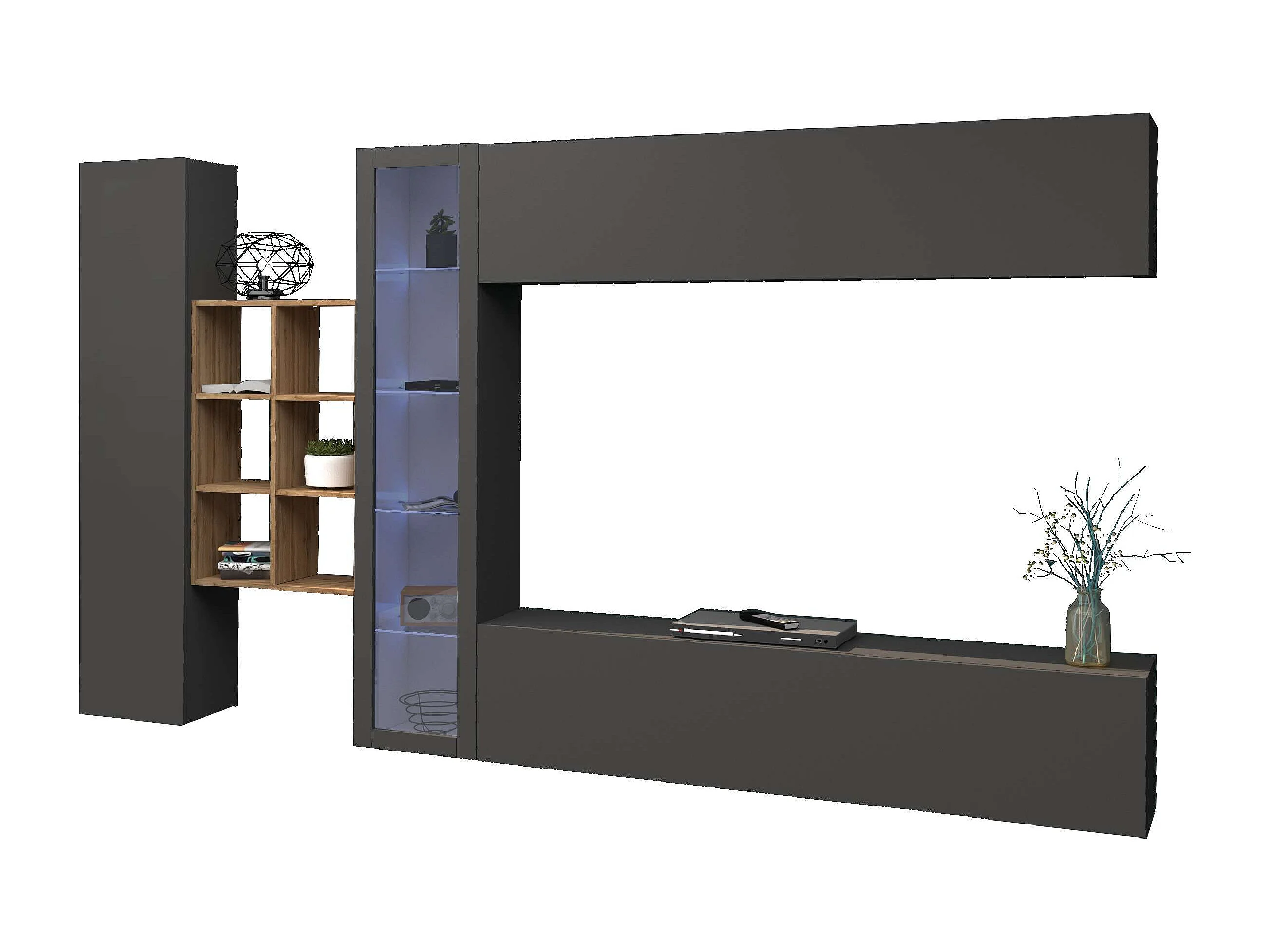 Loane RT Meuble TV suspendu moderne armoire et bibliothèque