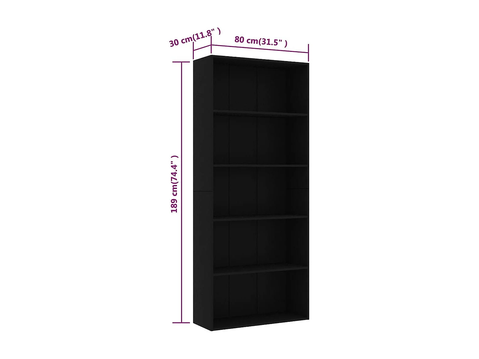 Loïc Bibliothèque à 5 niveaux Noir 80x30x189 cm Bois d'ingénierie