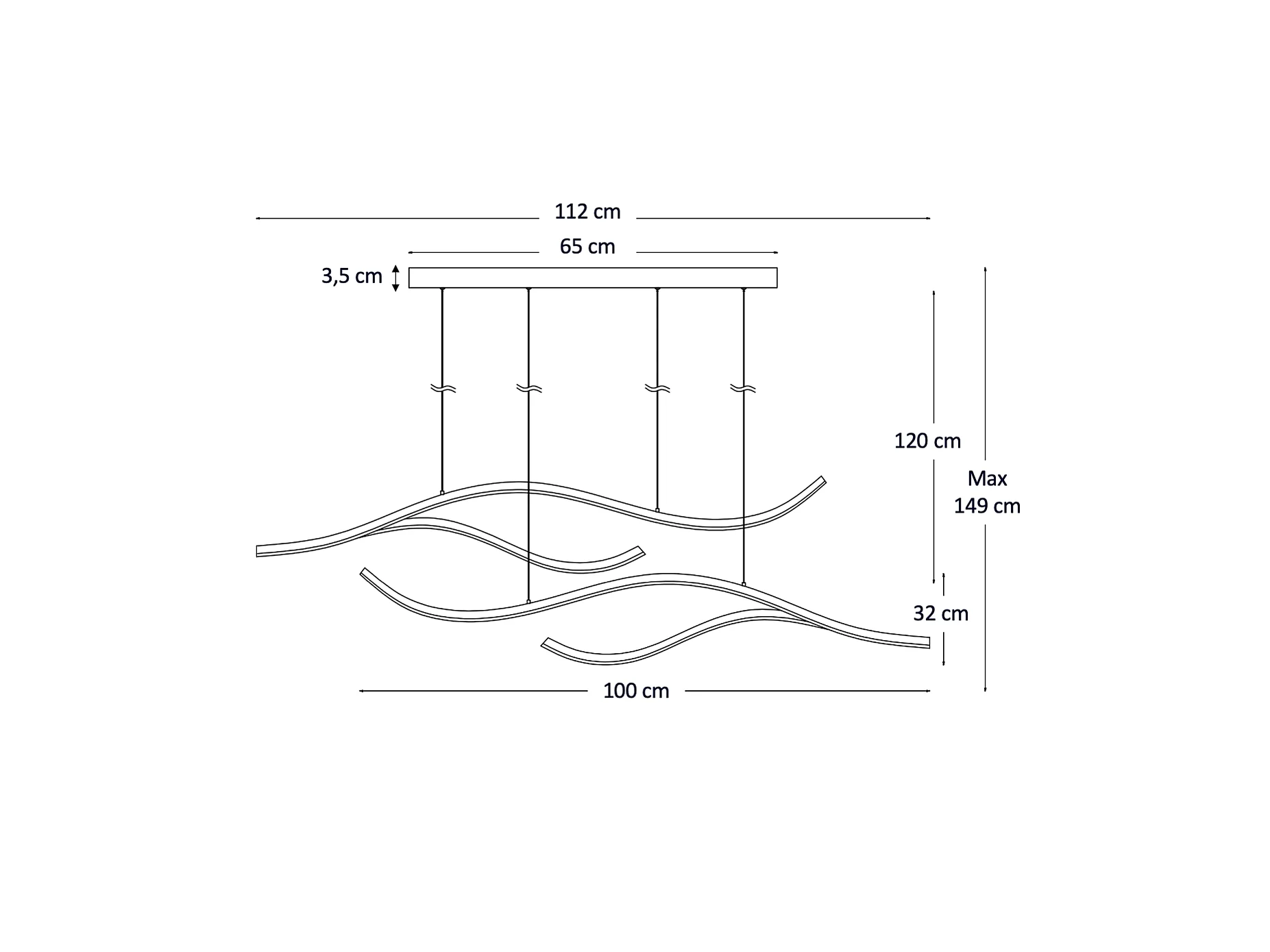 Longue suspension LED dimmable vagues noires lumineuses 112 cm - Portofino