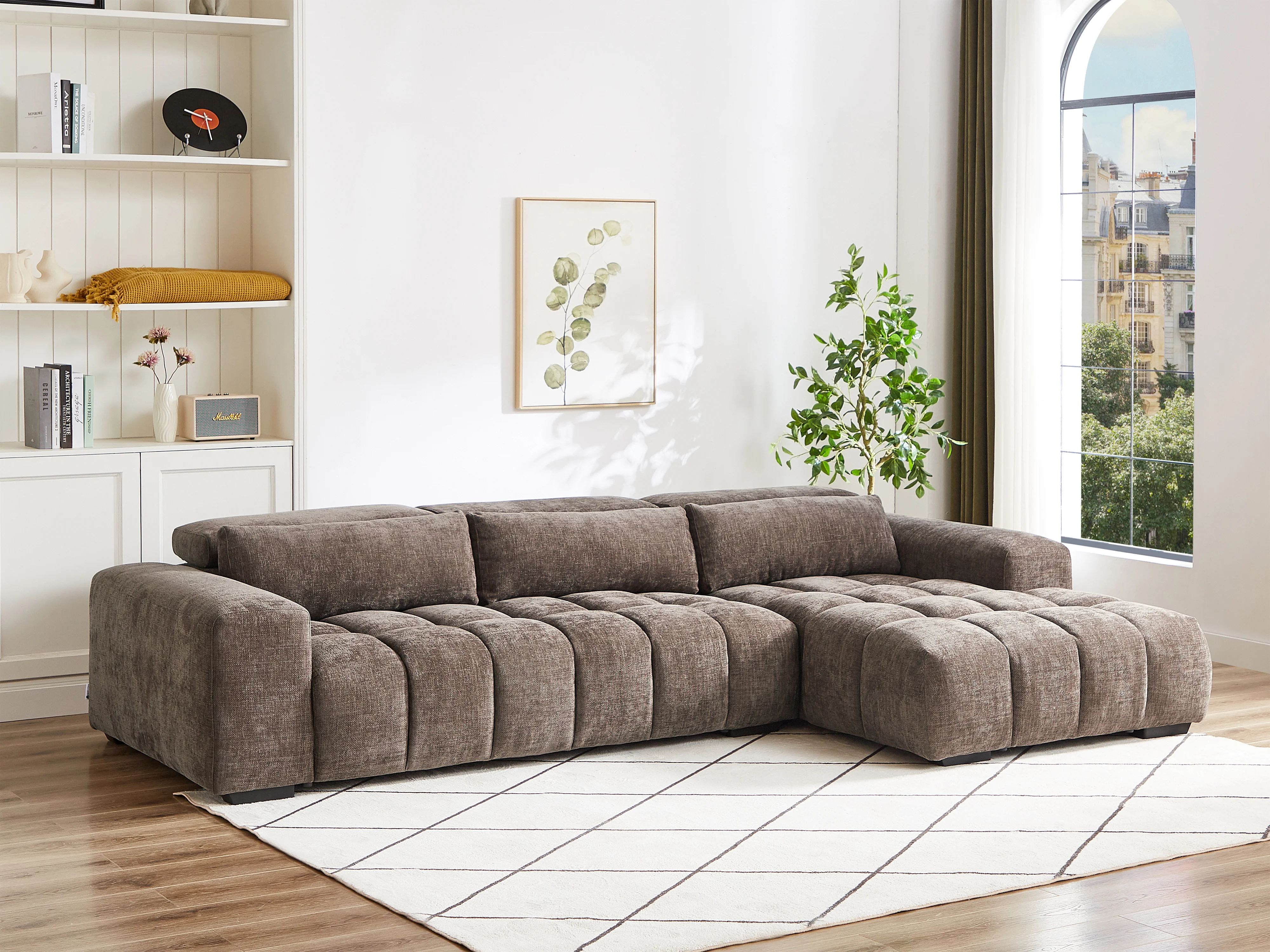 Canapé d'angle droit en tissu texturé taupe LOPONZA