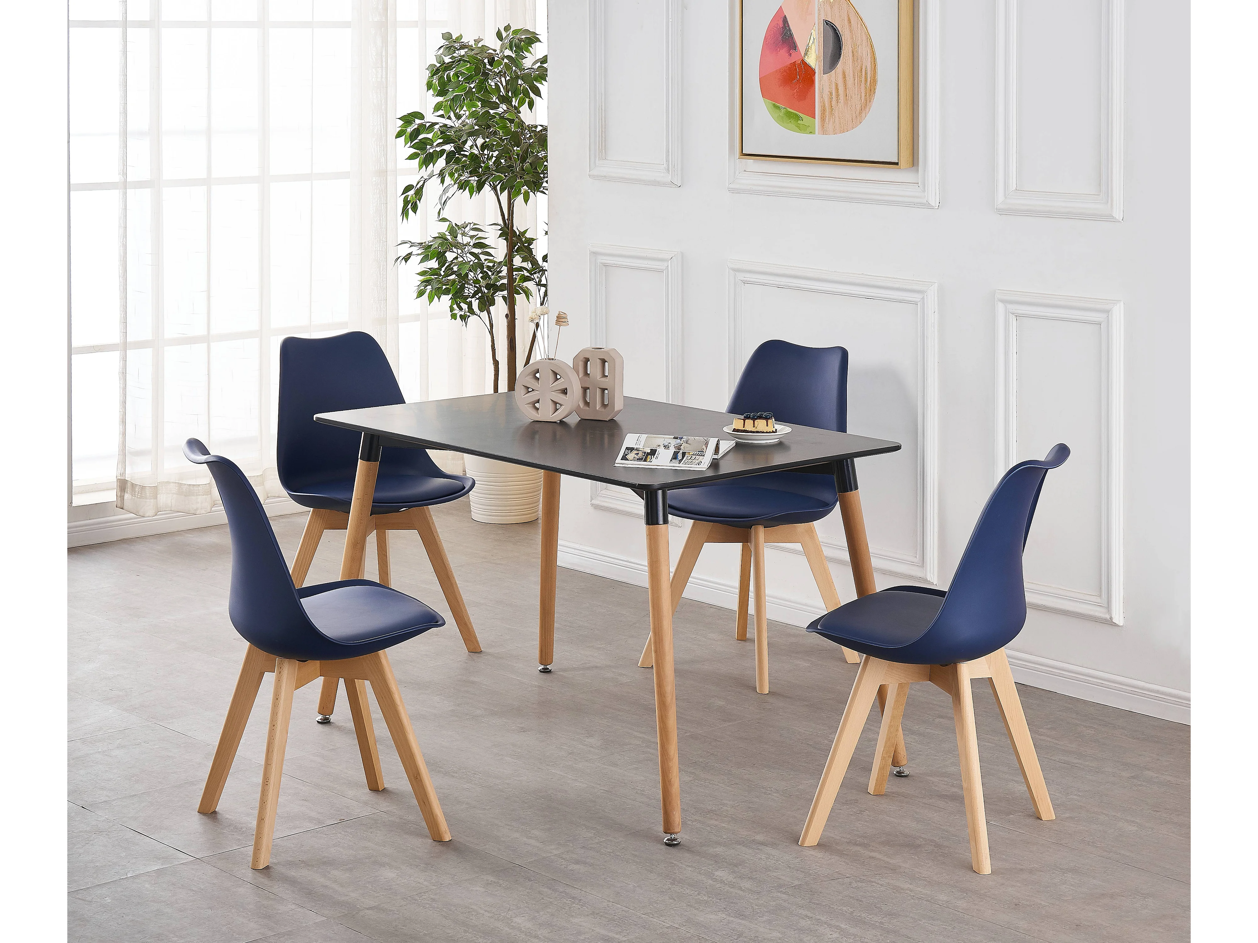 LORENZO HALO - Ensemble Salle à Manger Moderne - Table Noire + 4 Chaises Bleues - Design Scandinave