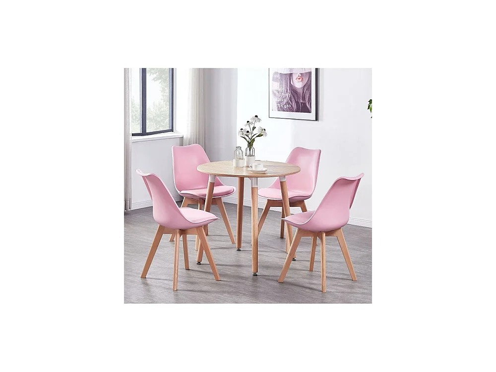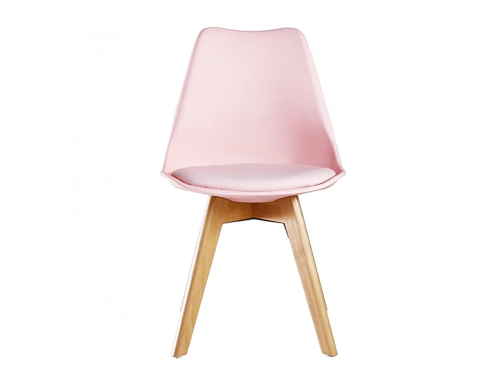 Chaise Tula style nordique - Assise en simili cuir et pieds en bois clair-Couleur Rose clair