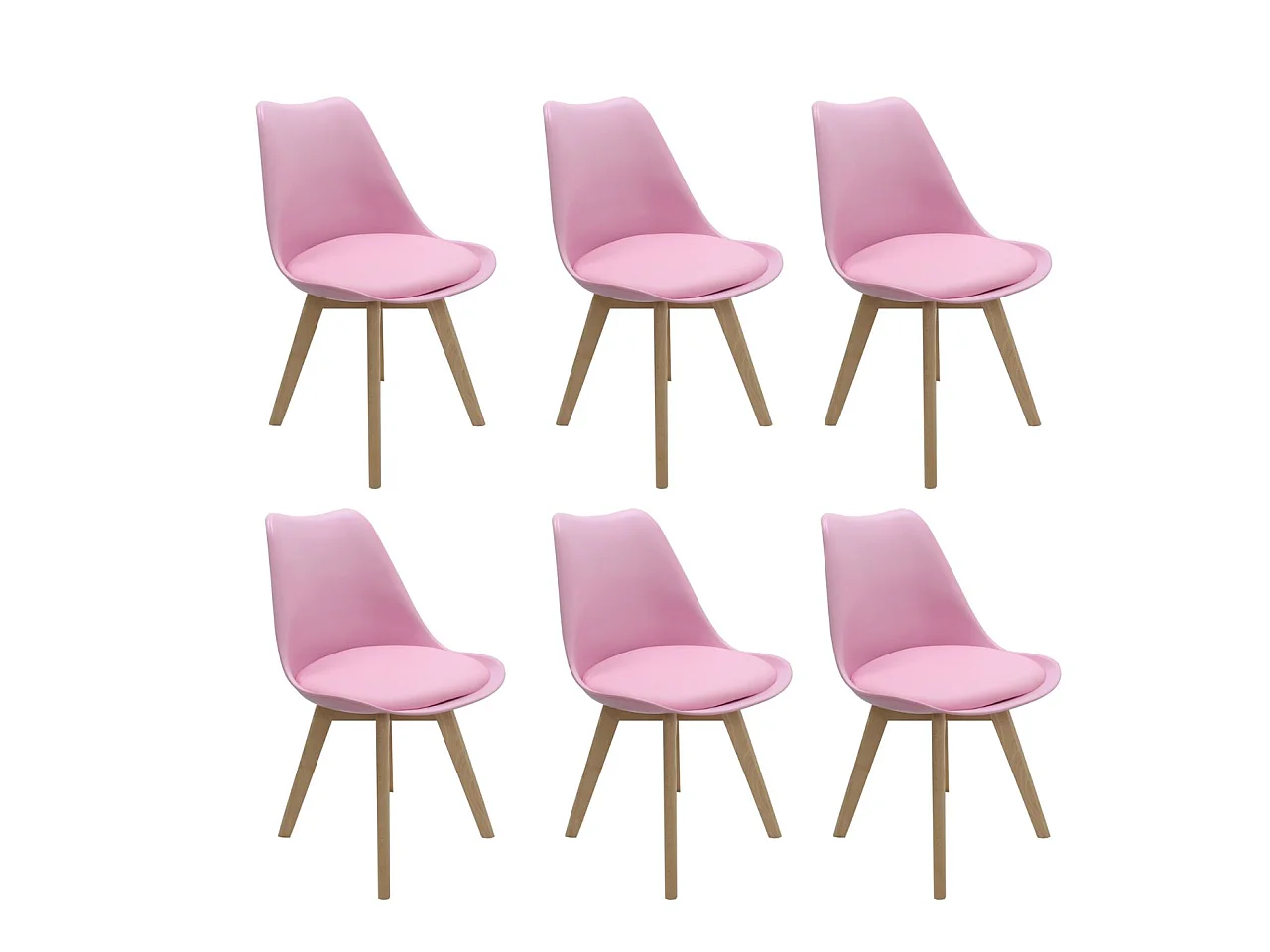LORENZO - Lot de 6 Chaises Scandinaves - Assise Rembourrée - Rose