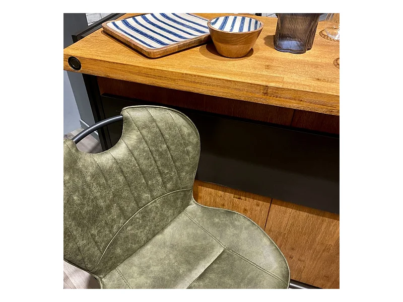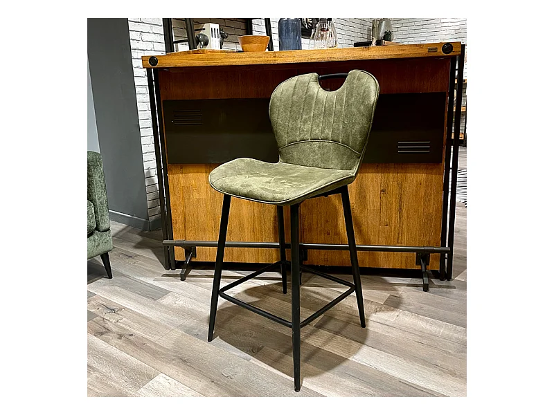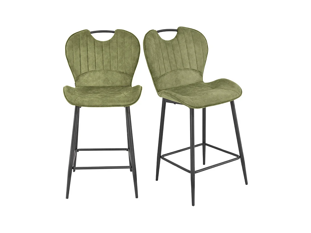 Lot 2 chaises bar microfibre vert effet vieilli pieds métal – WILLY 2