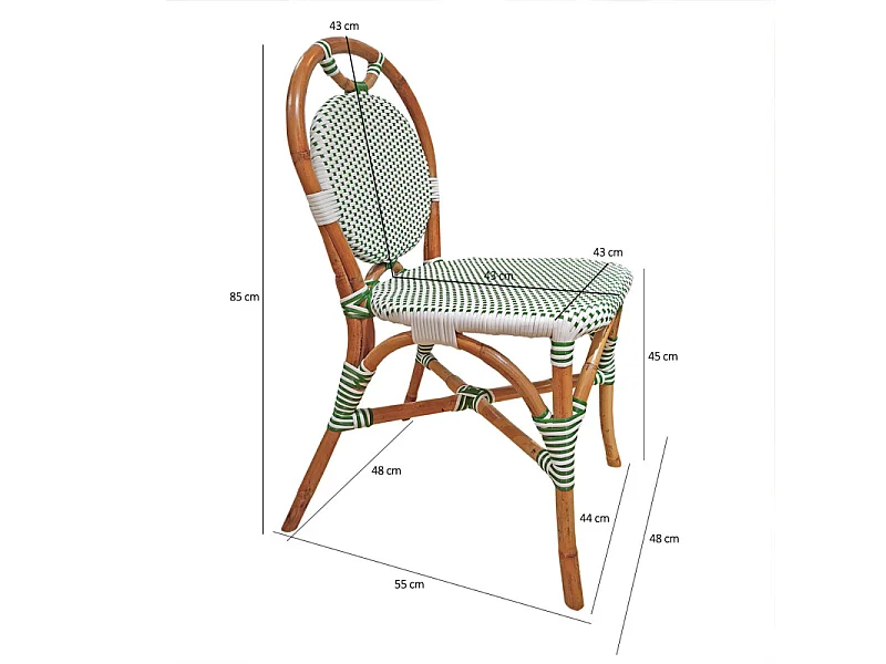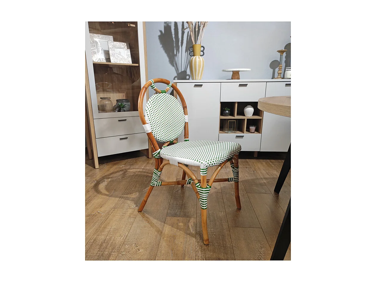 Lot 2 chaises bistrot en rotin naturel cannage vert et blanc - PIGALLE