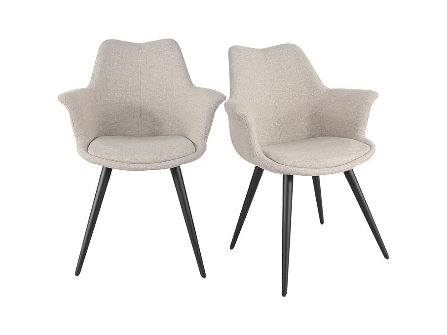 Lot 2 chaises en tissu beige avec pieds métal et accoudoirs – CALGARY