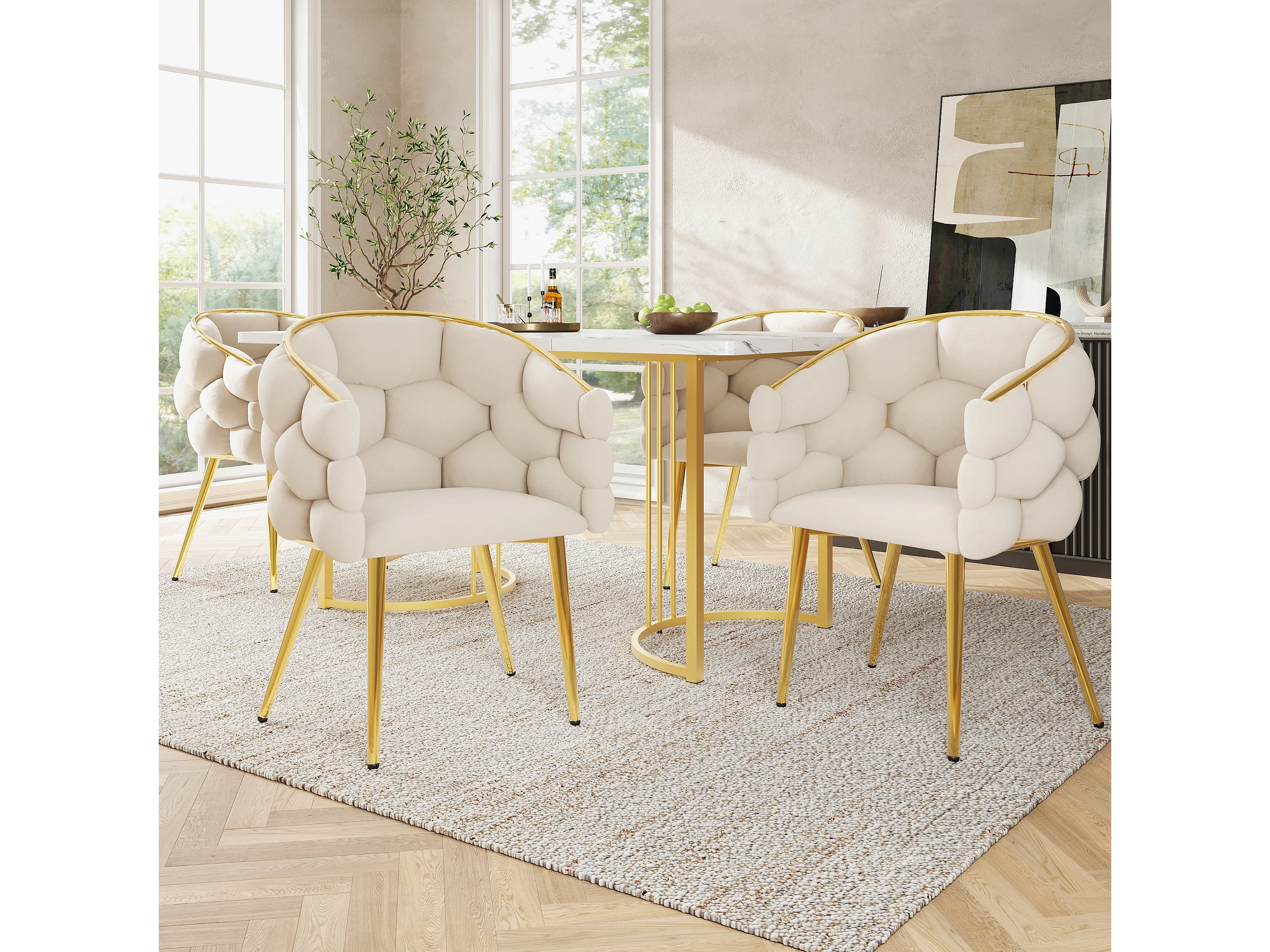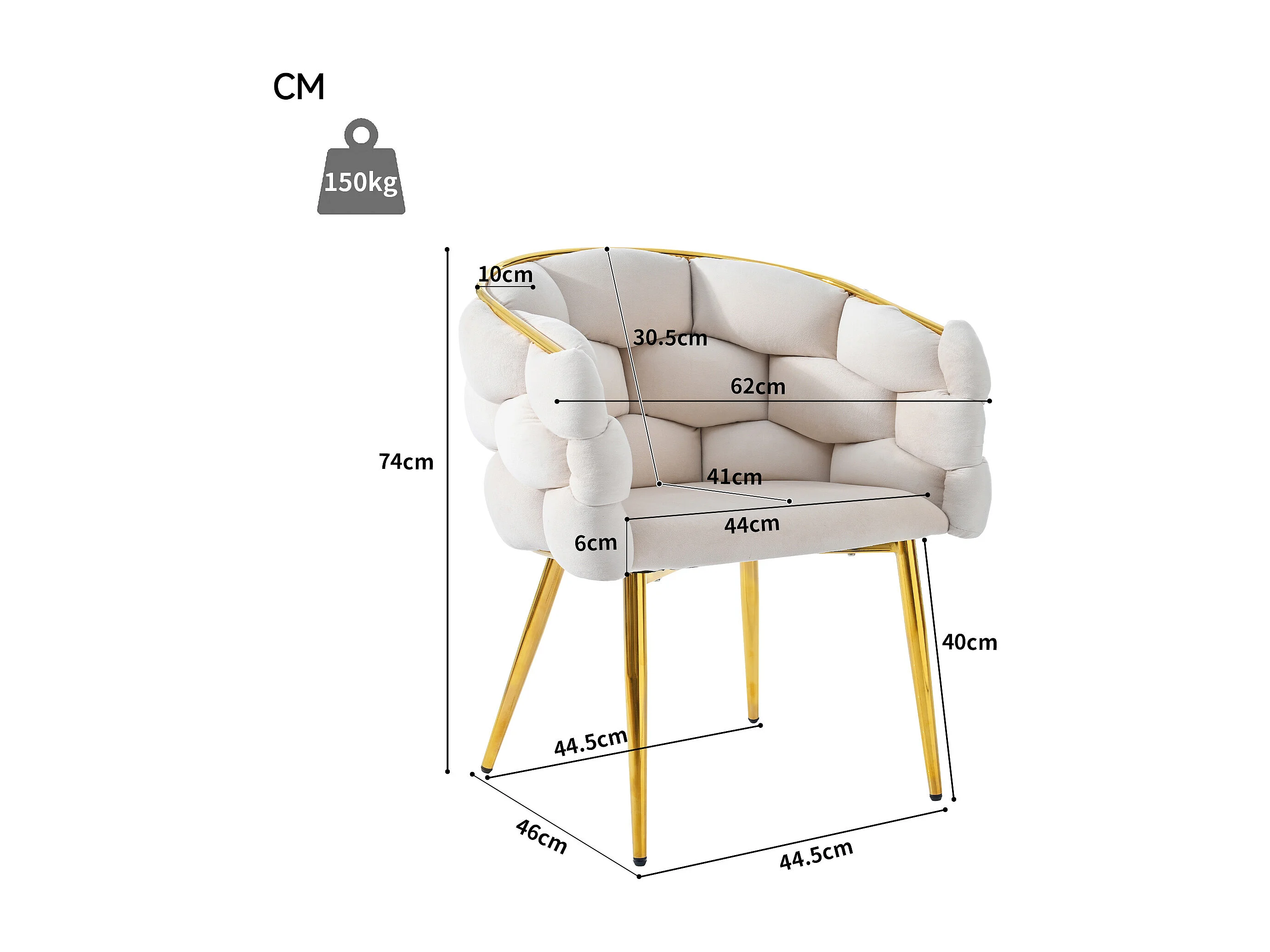 Lot 2 chaises modernes en velours, pieds métal doré, beige, Bubble ergonomiques pour salon