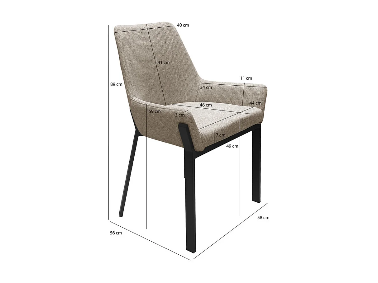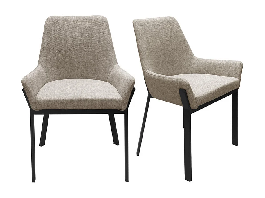 Lot 2 chaises tissu chiné capitonné taupe pieds métal noir - CERAMIK