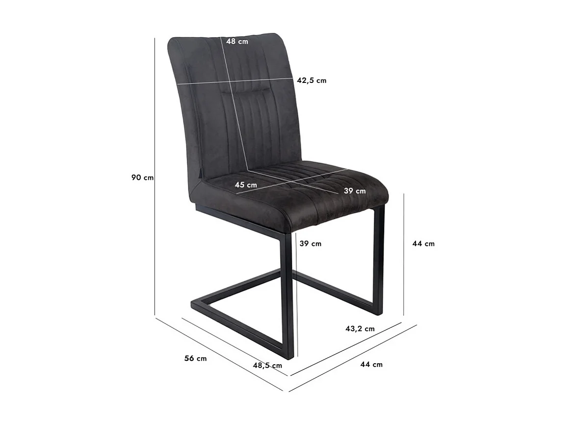 Lot 2 chaises tissu gris anthracite vintage pieds métal noir - VIVI 2