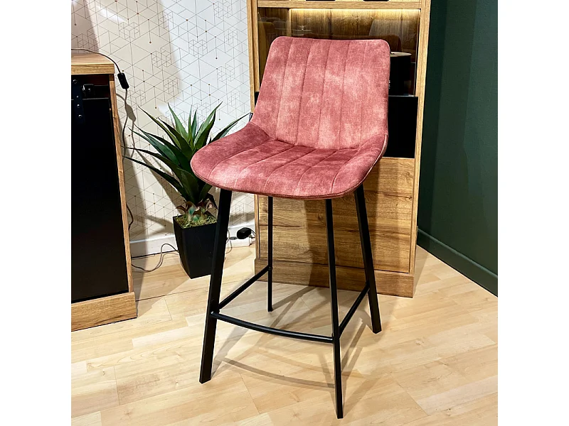 Lot 2 tabourets de bar en velours rose et pieds métal noir – NANY 2